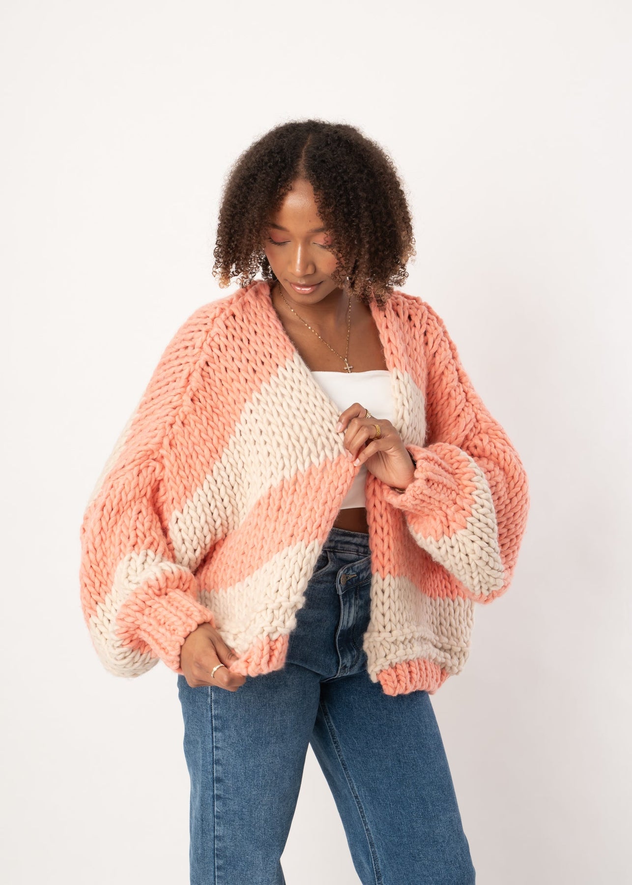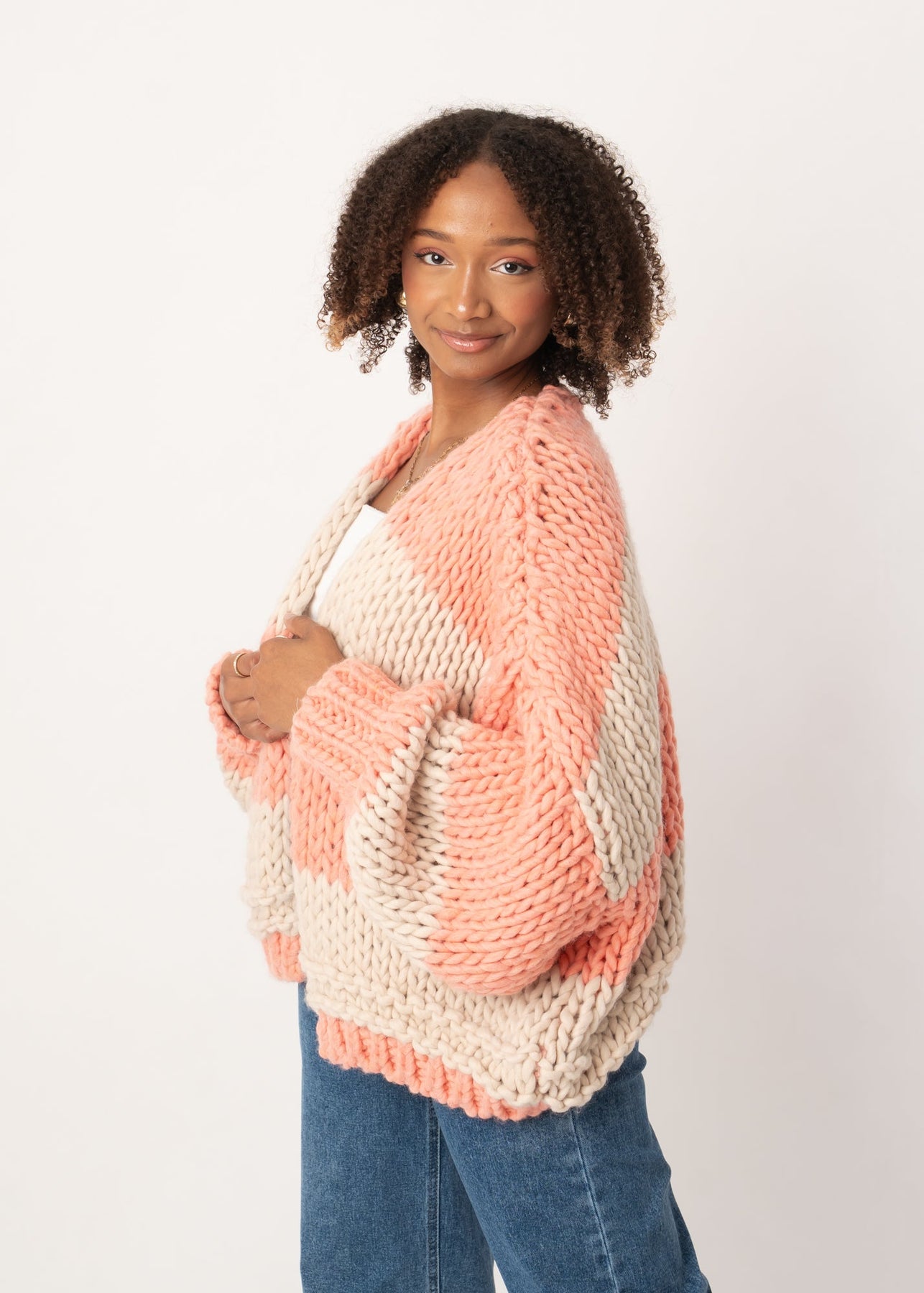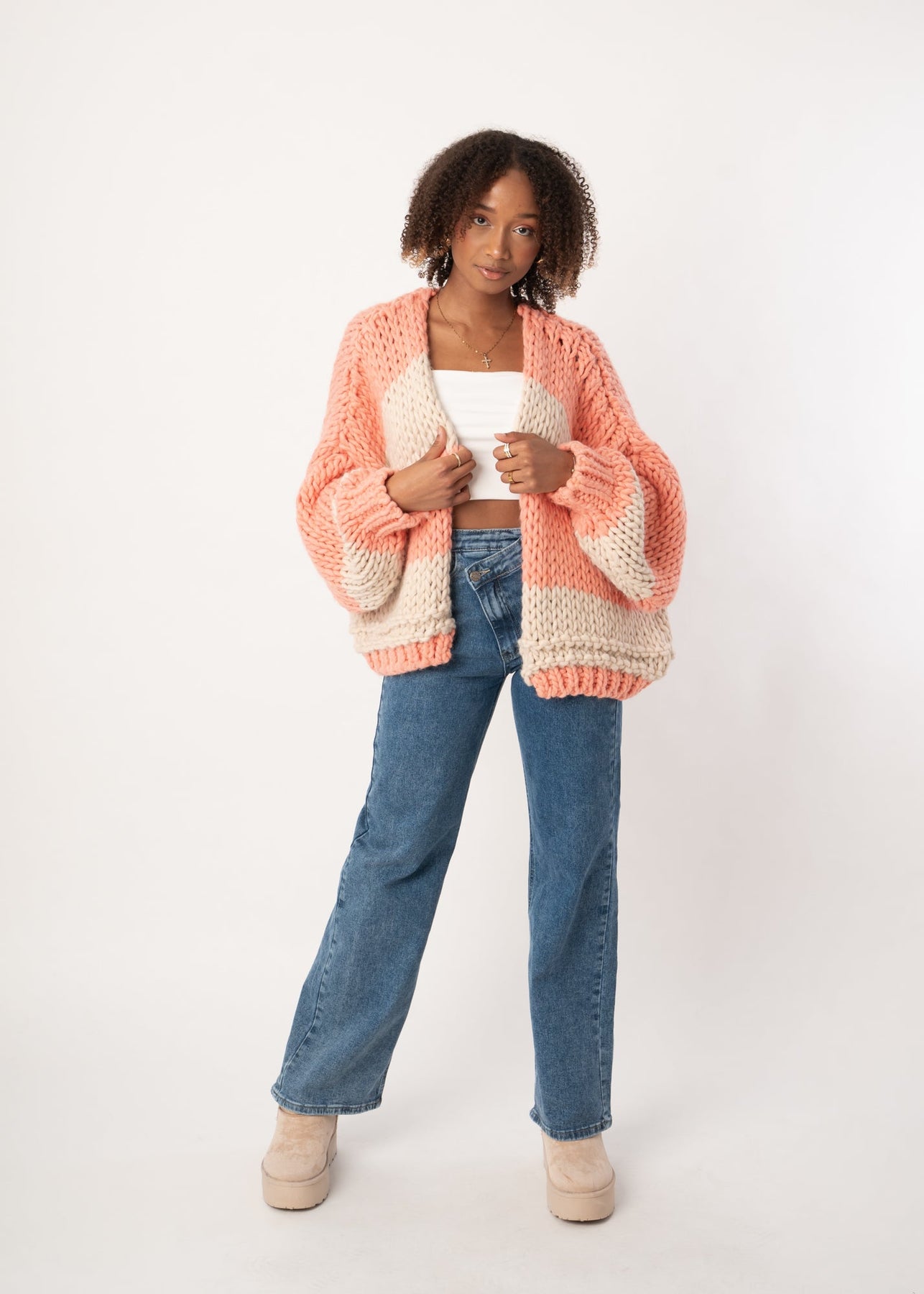 Chunky Knit Cardigan - Apricot/Beige – Velariv