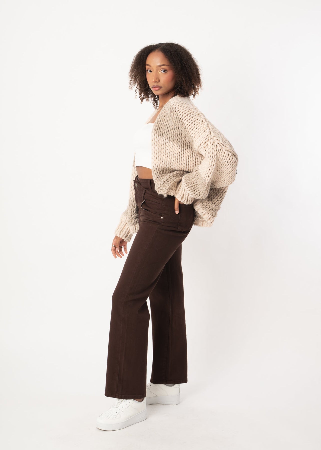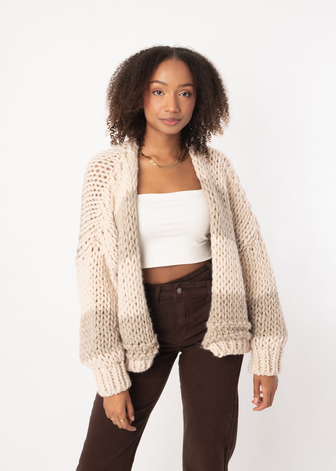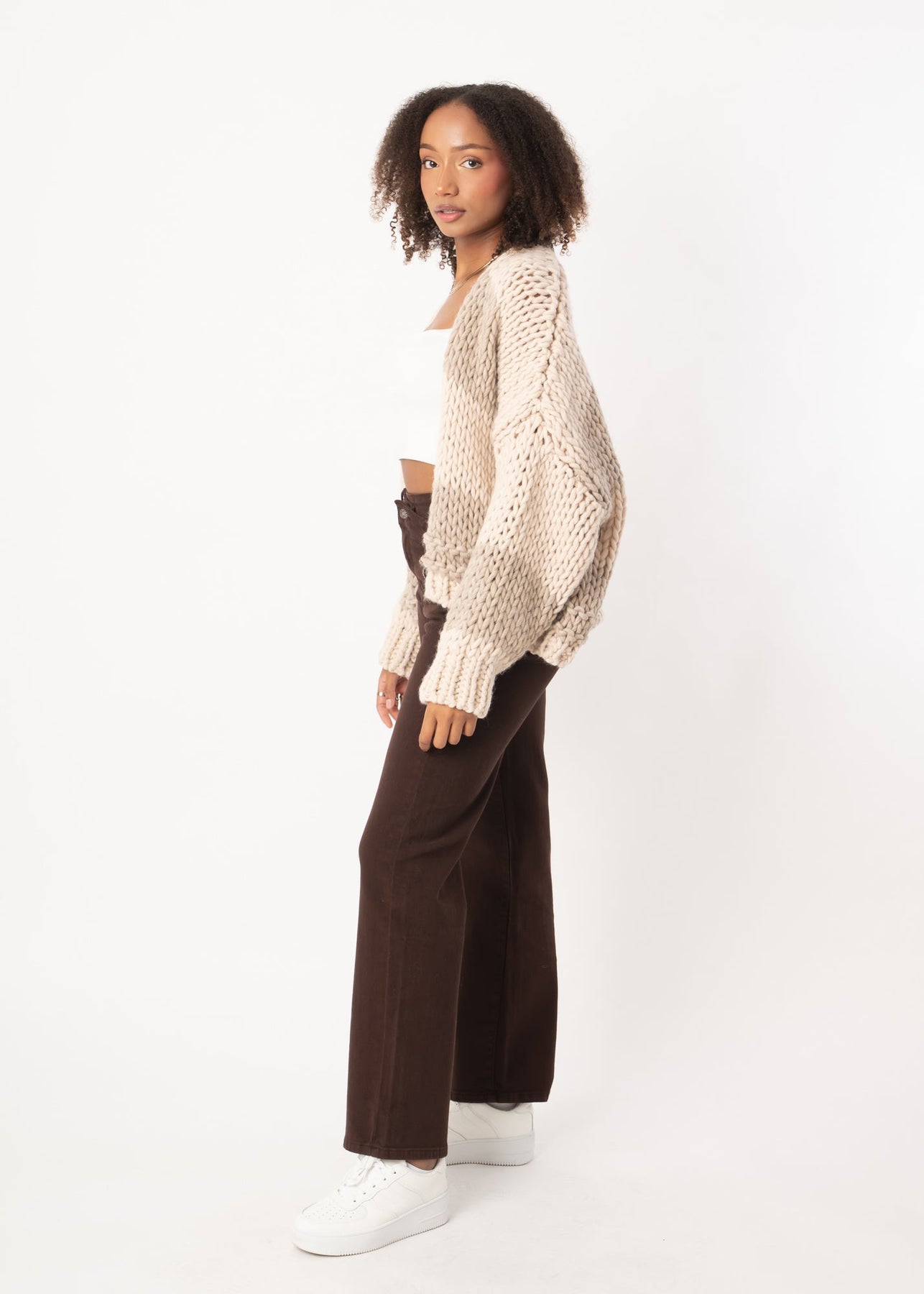 Chunky Knit Cardigan - Beige/Taupe – Velariv