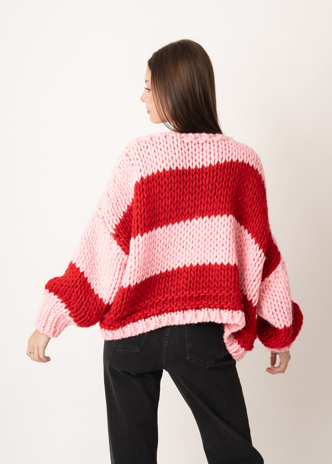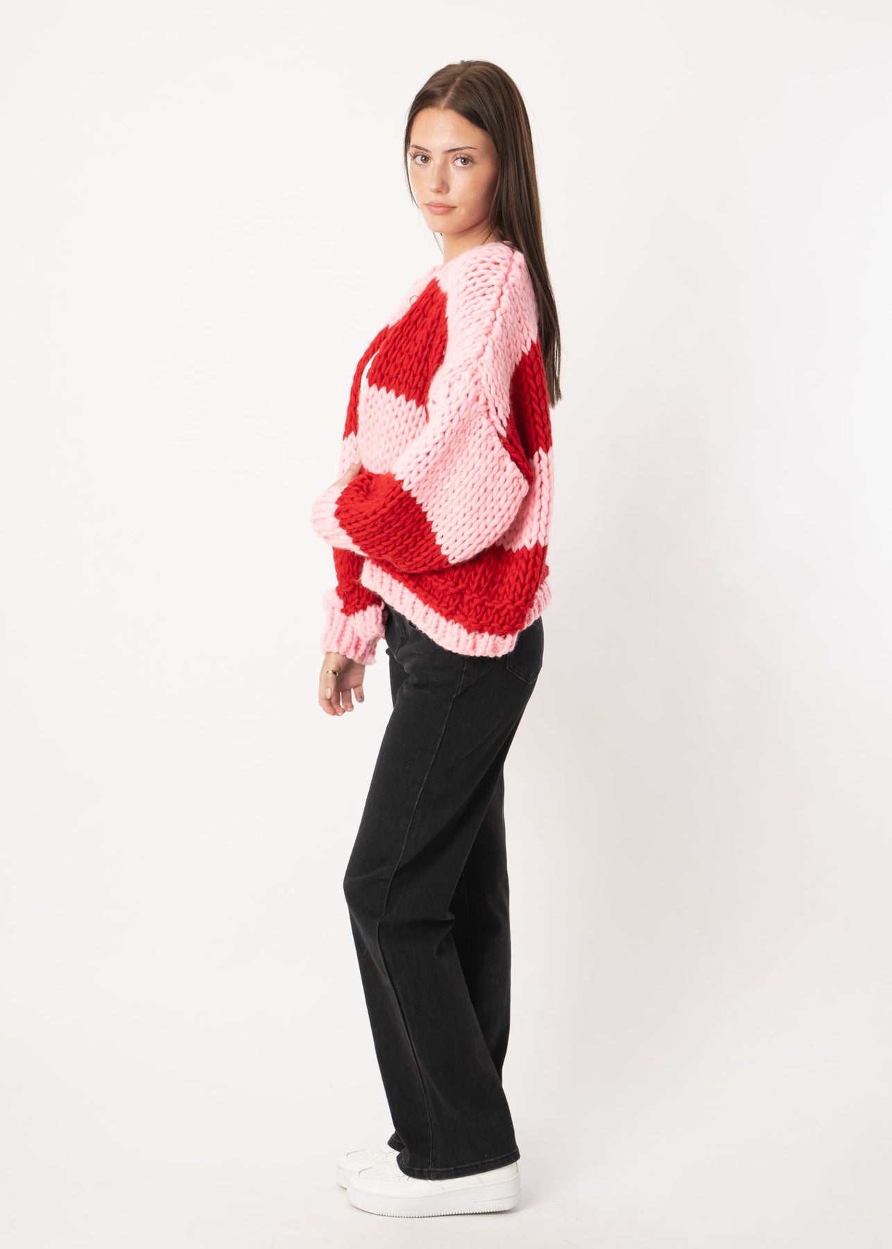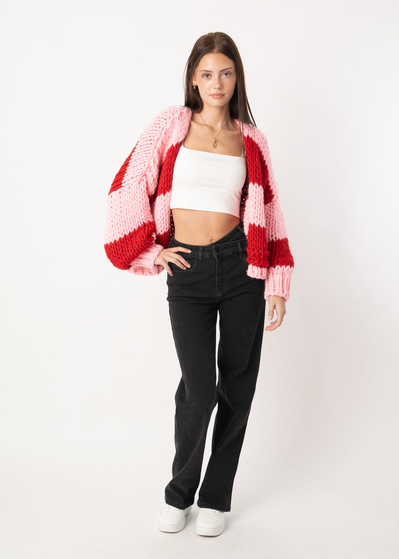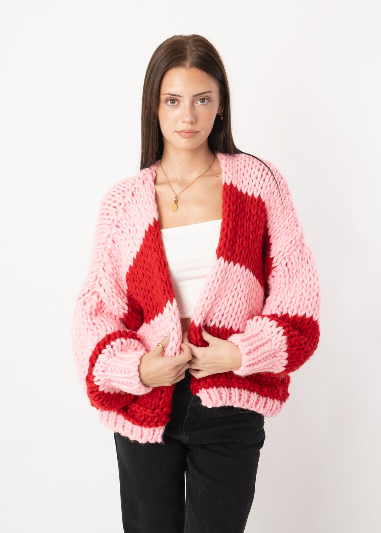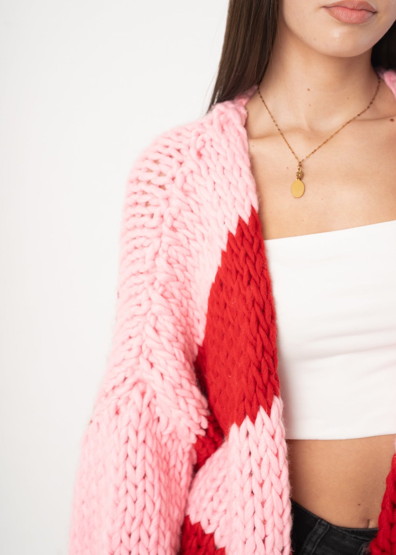 Chunky Knit Cardigan - Pink/Red – Velariv