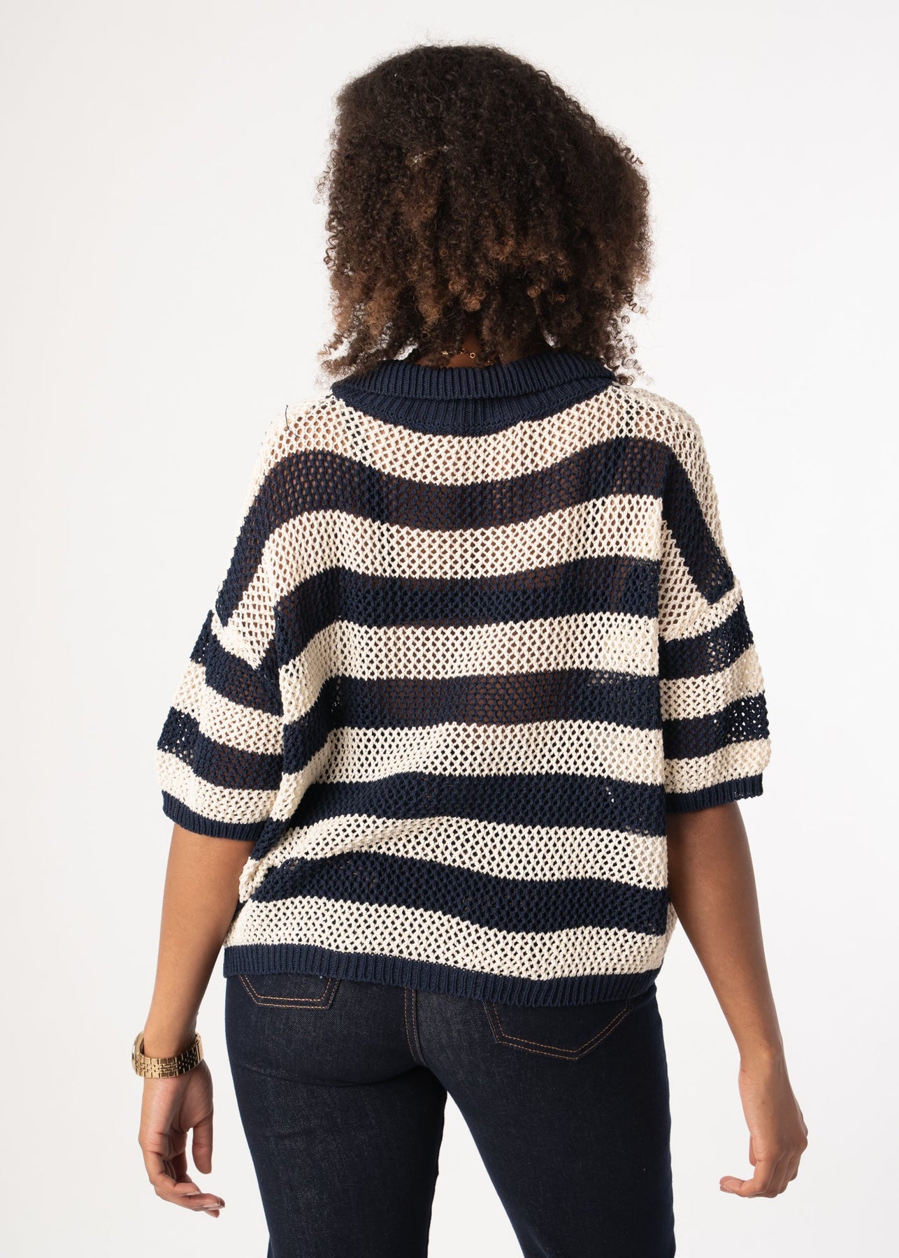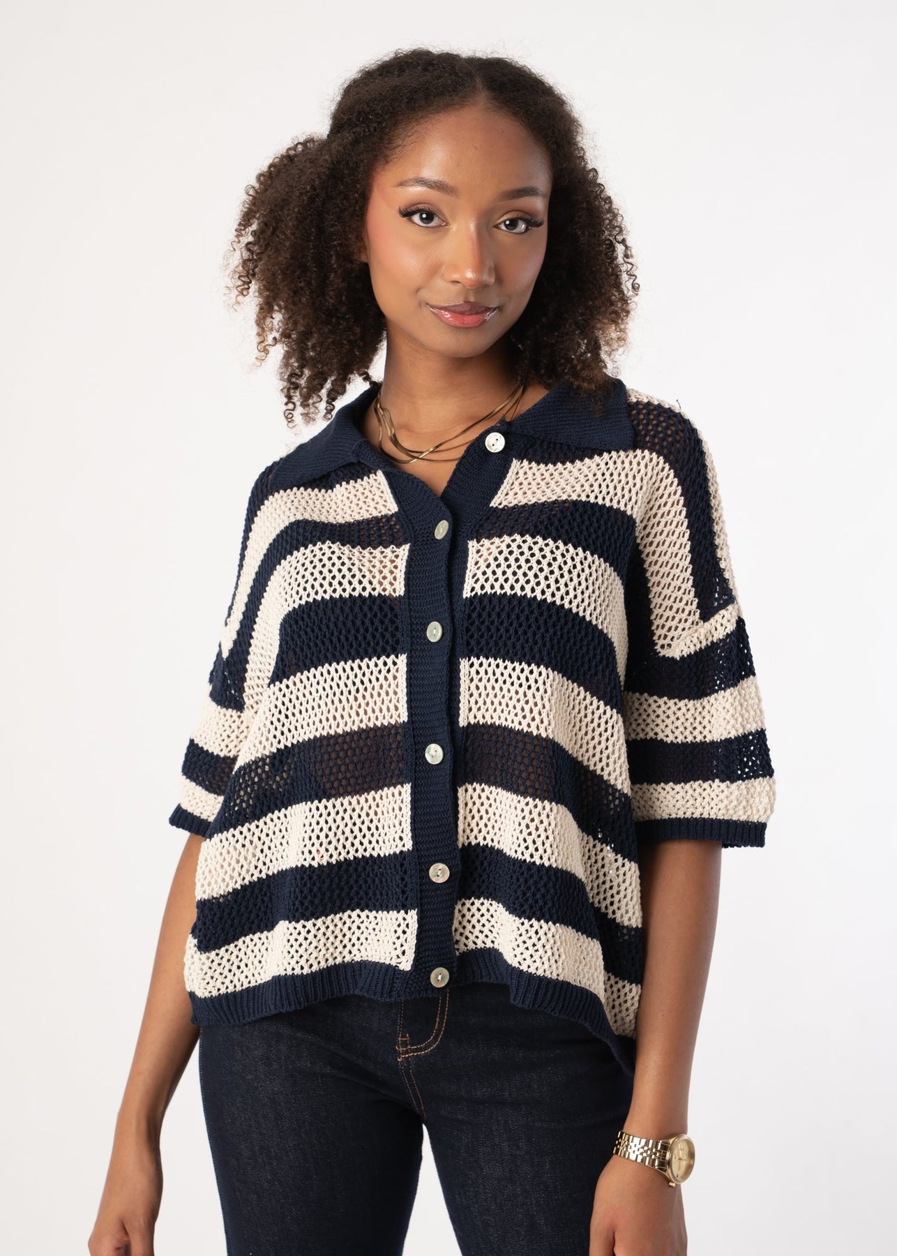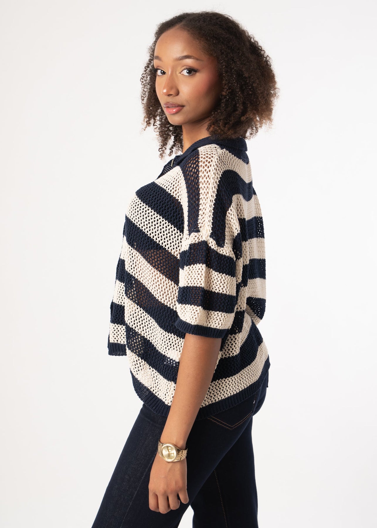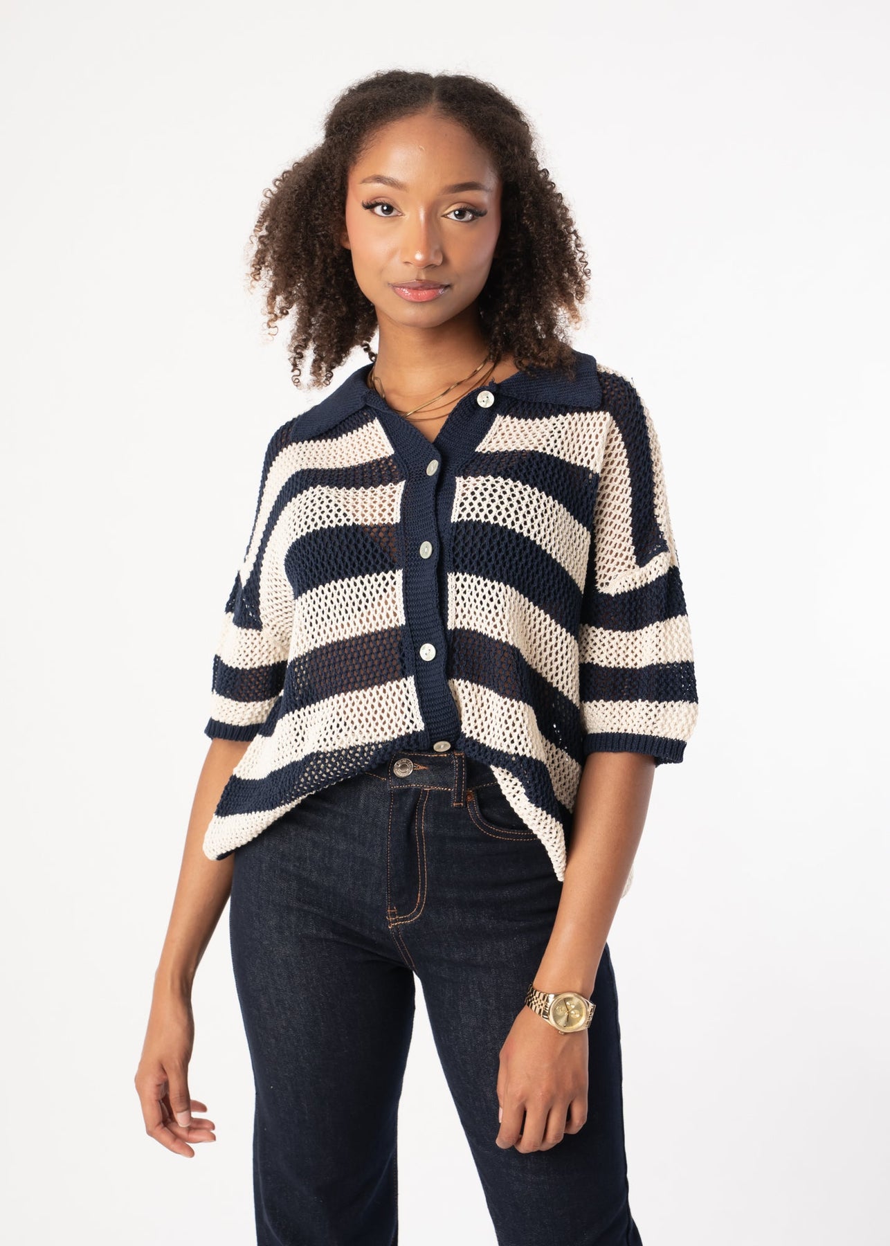 Crochet Polo Cardigan - Dark Blue – Velariv