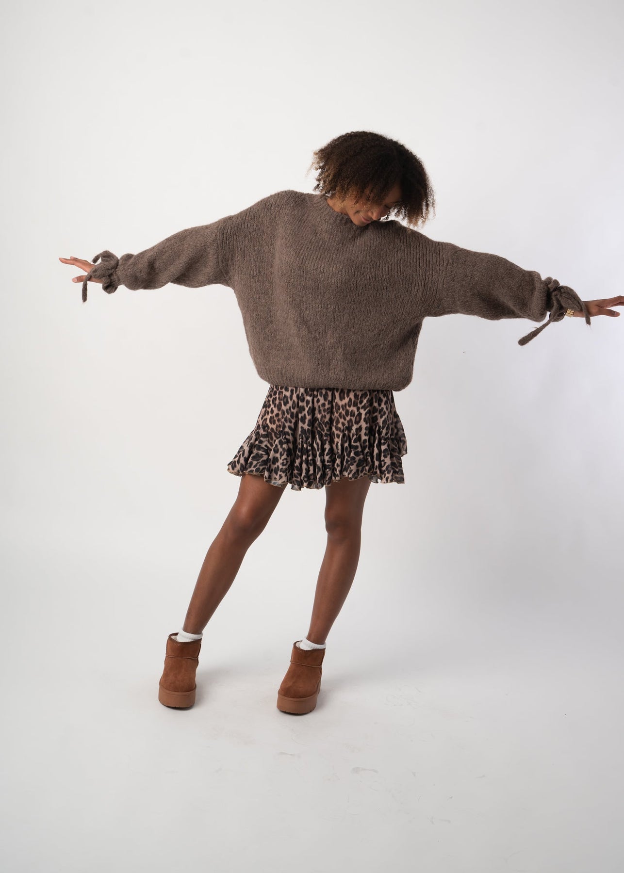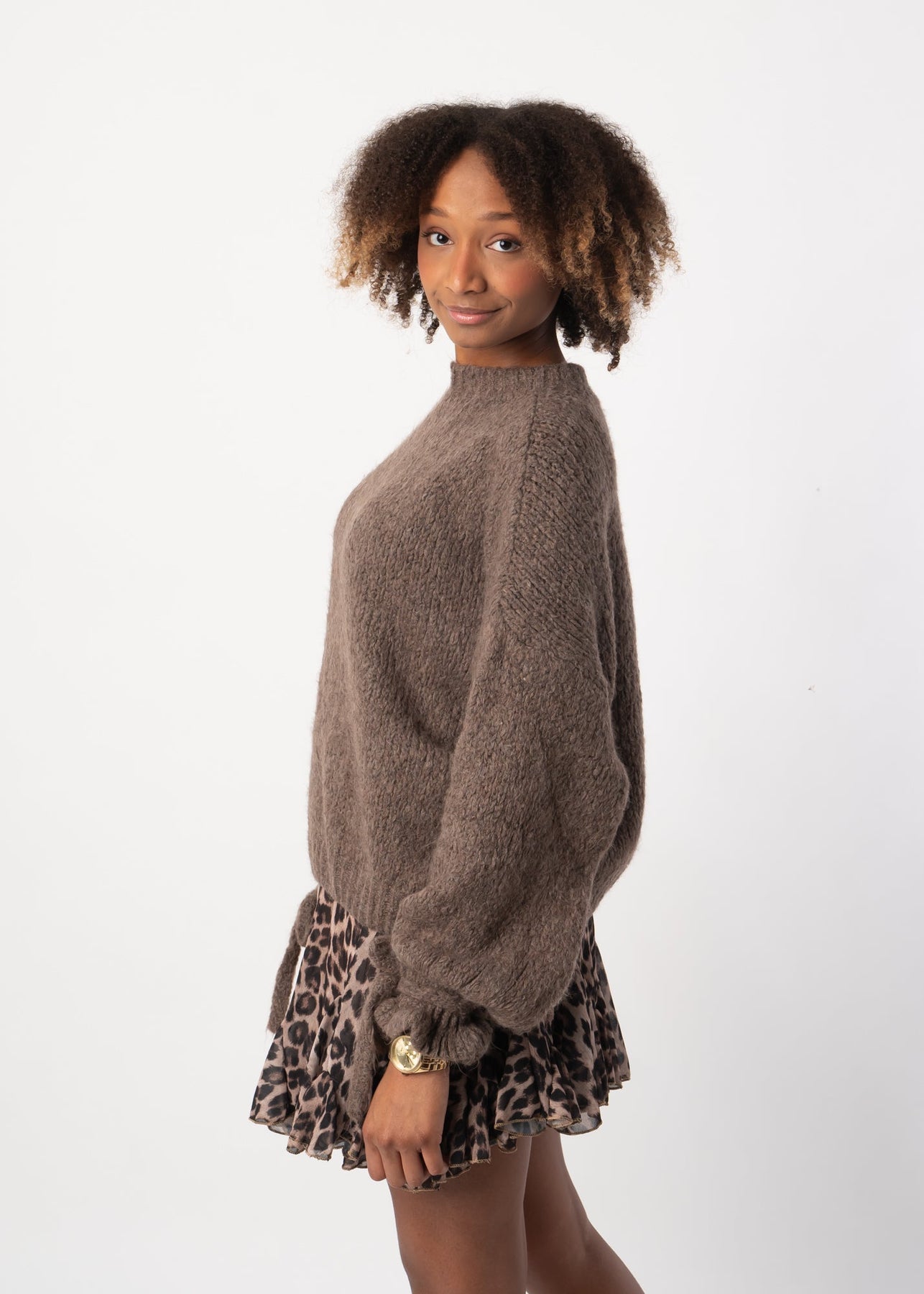 Knit Sweater with Bow Sleeves - Brown – Velariv