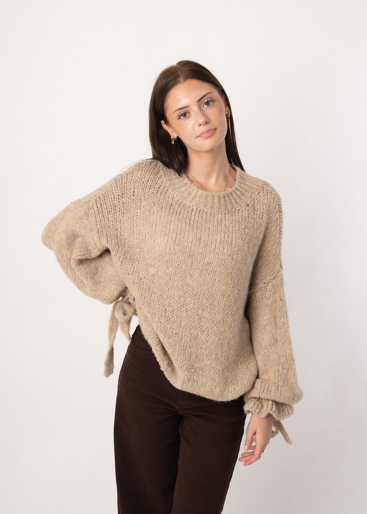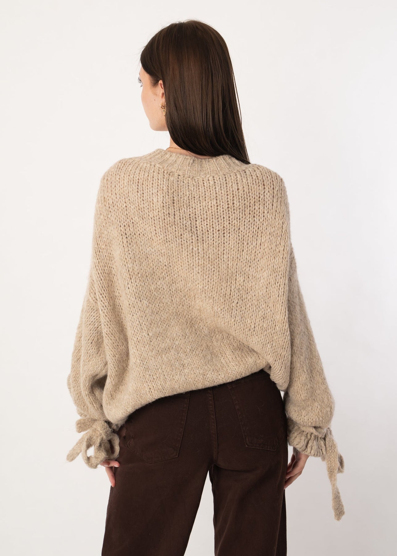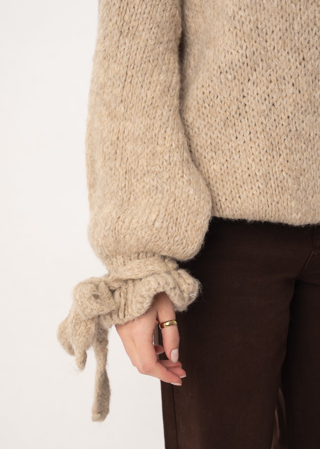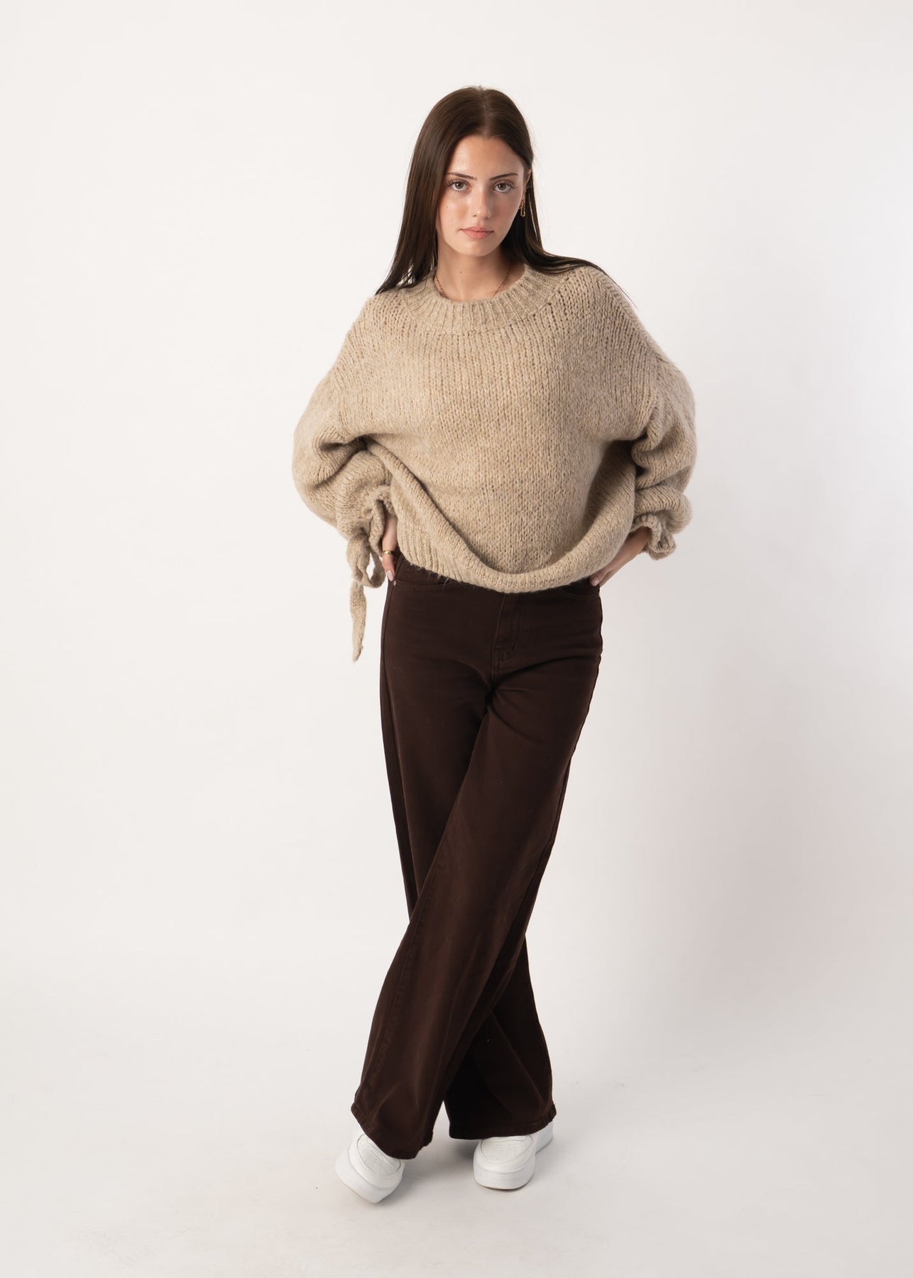 Knit Sweater with Bow Sleeves - Taupe – Velariv