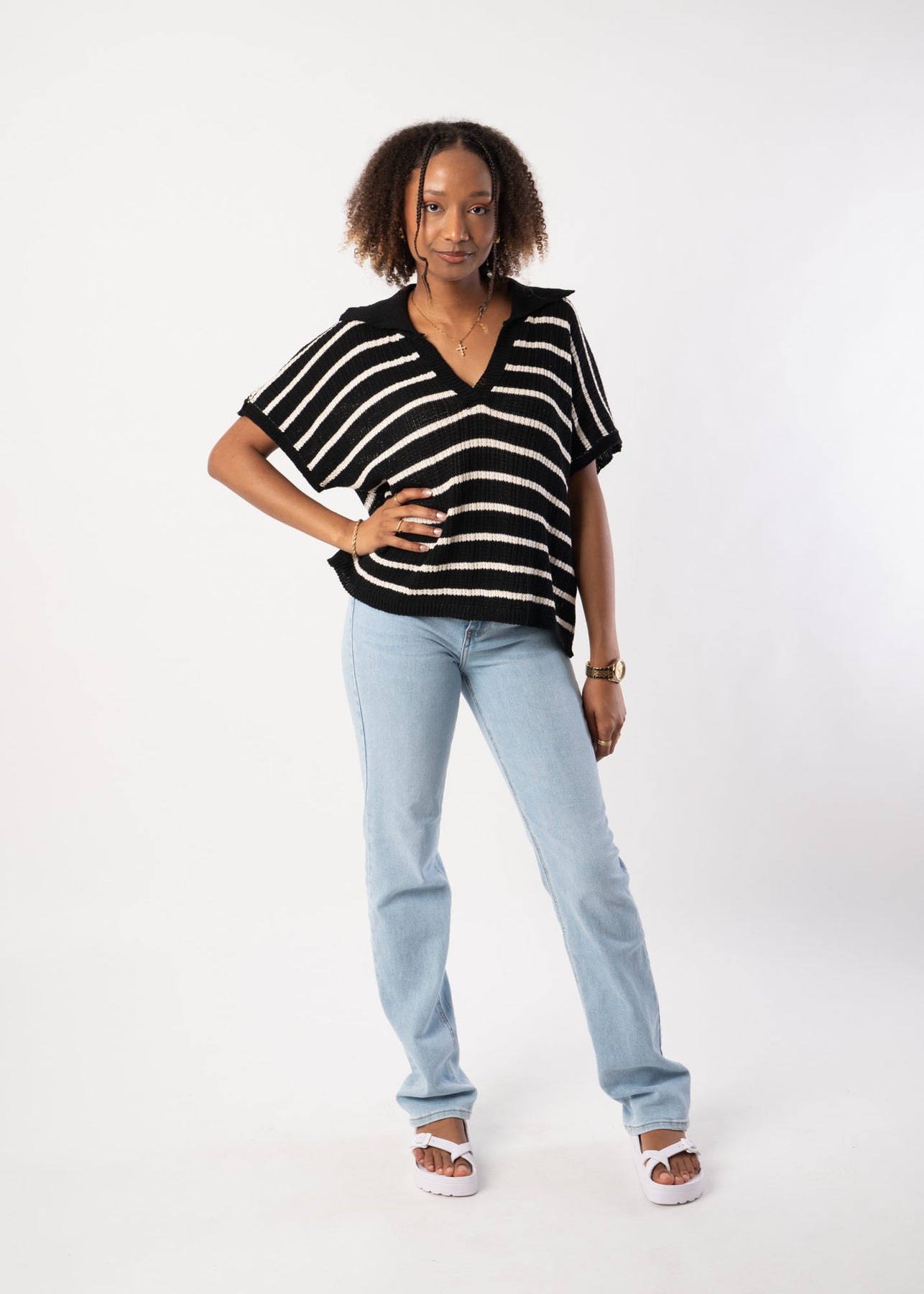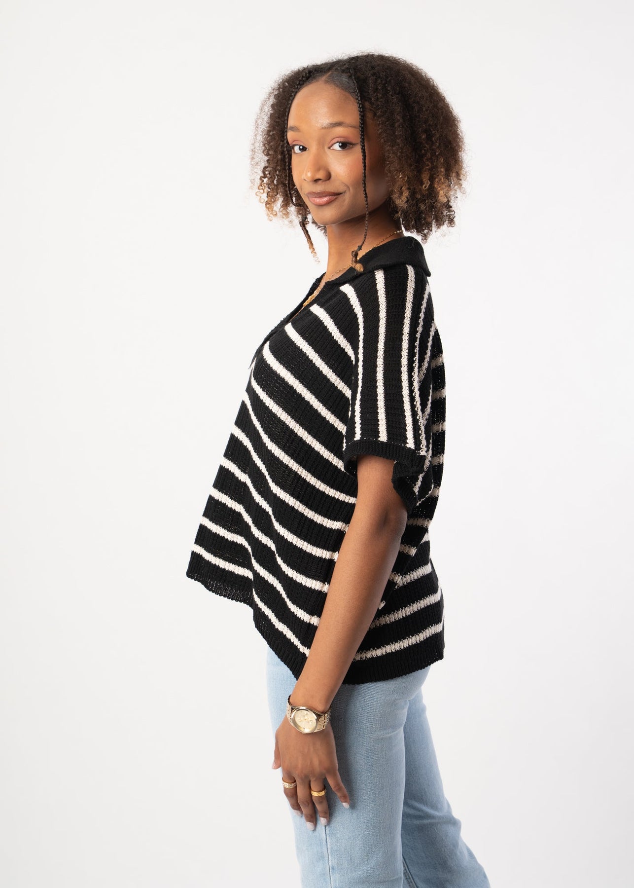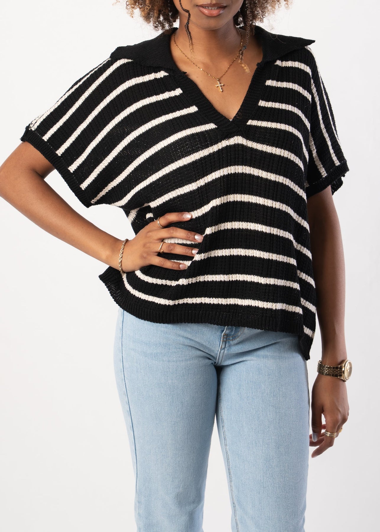 Knitted T-Shirt - Black/Beige
