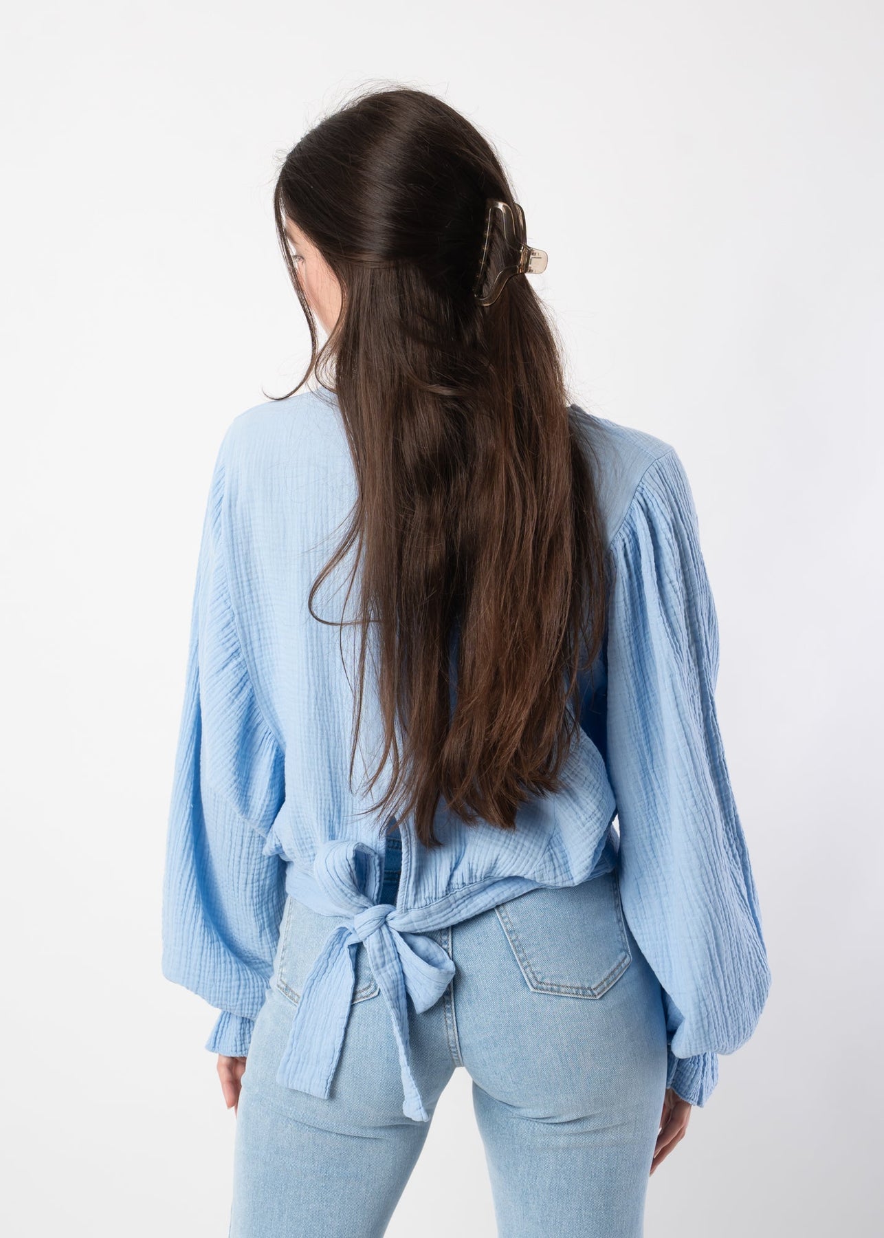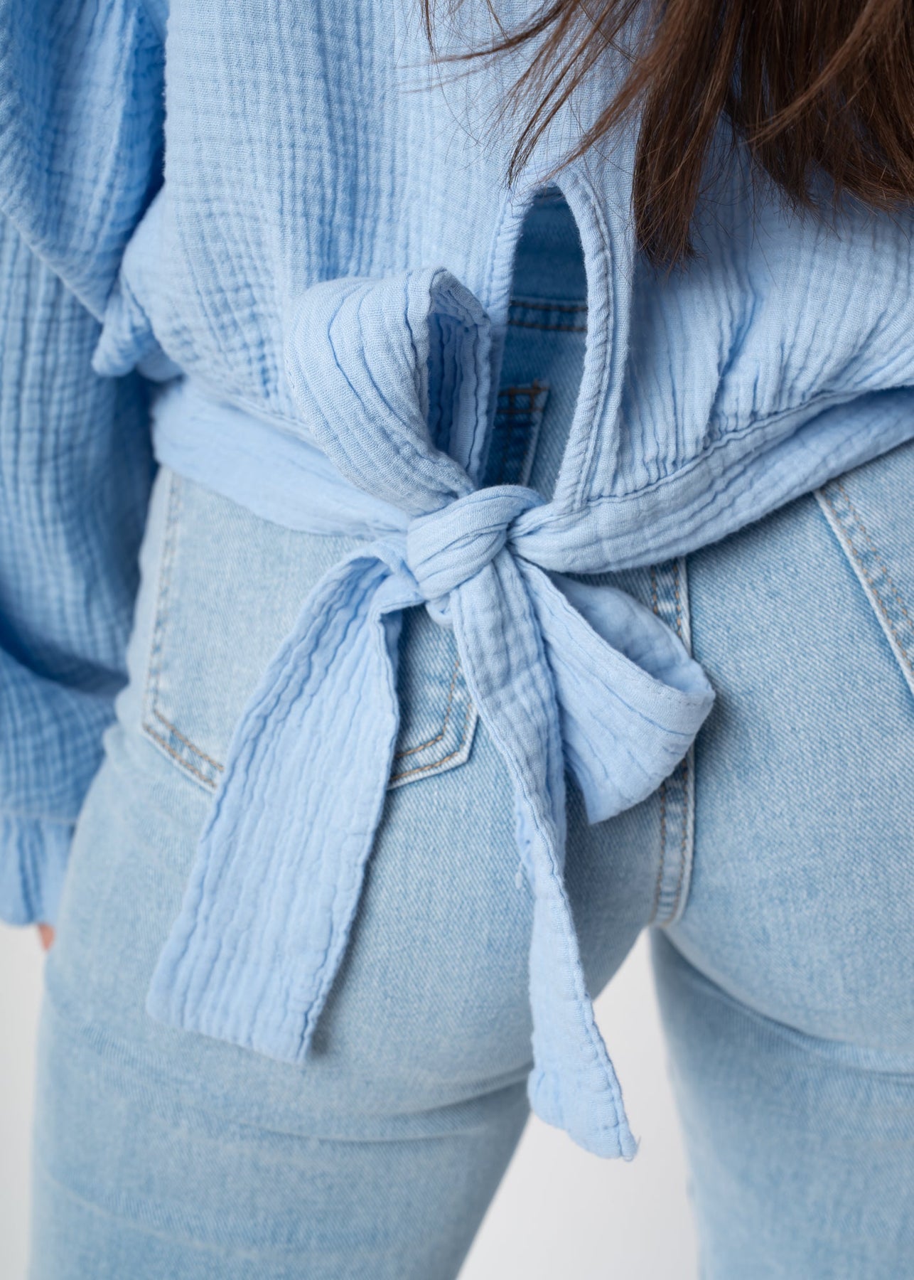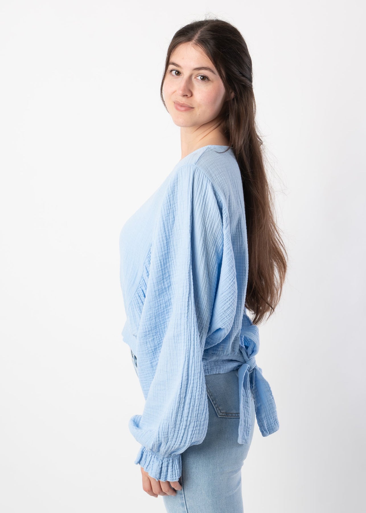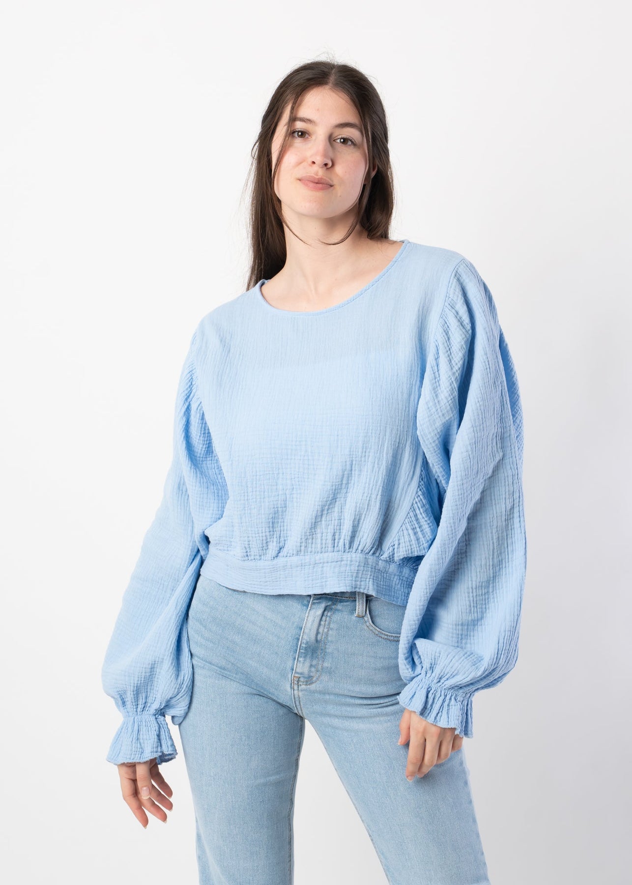 Long Sleeve Muslin Blouse - Light Blue – Velariv