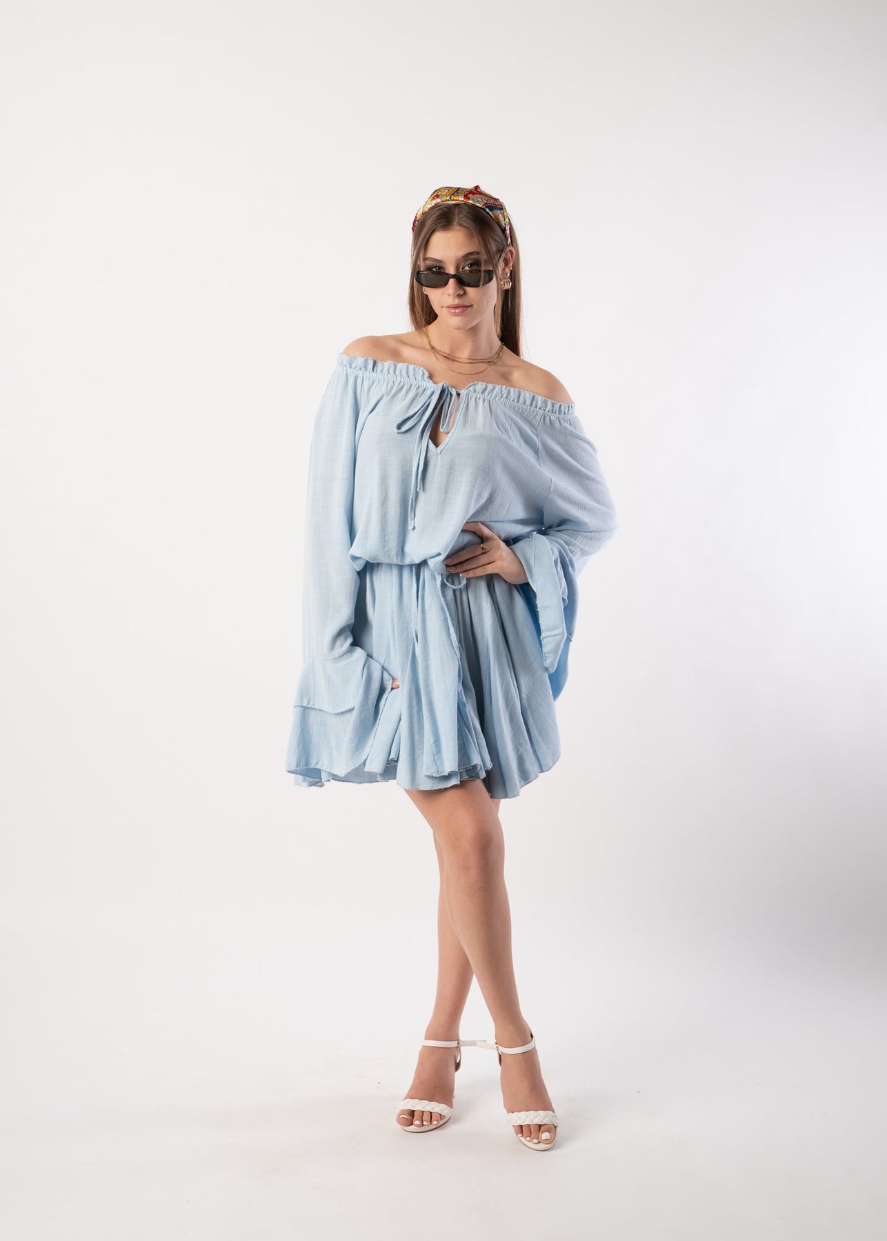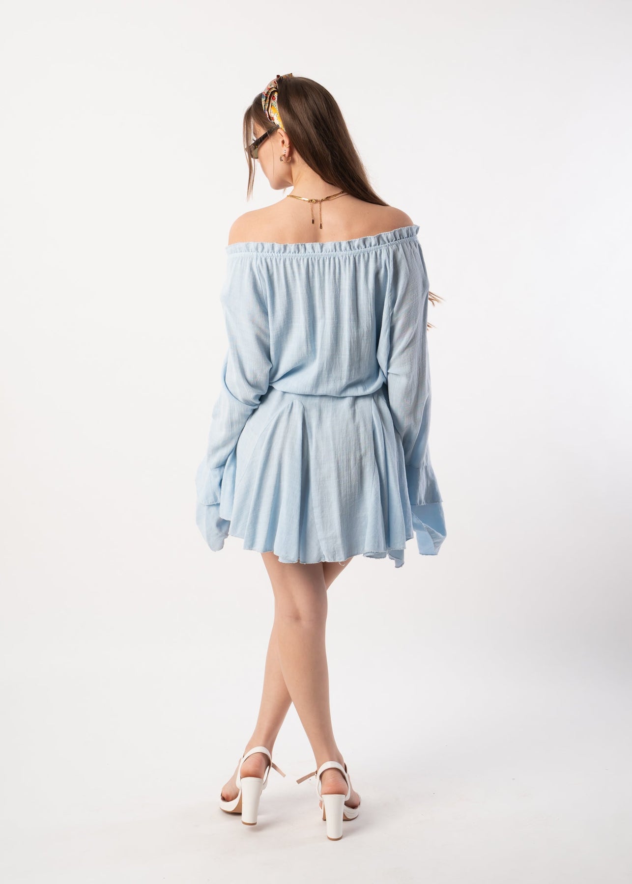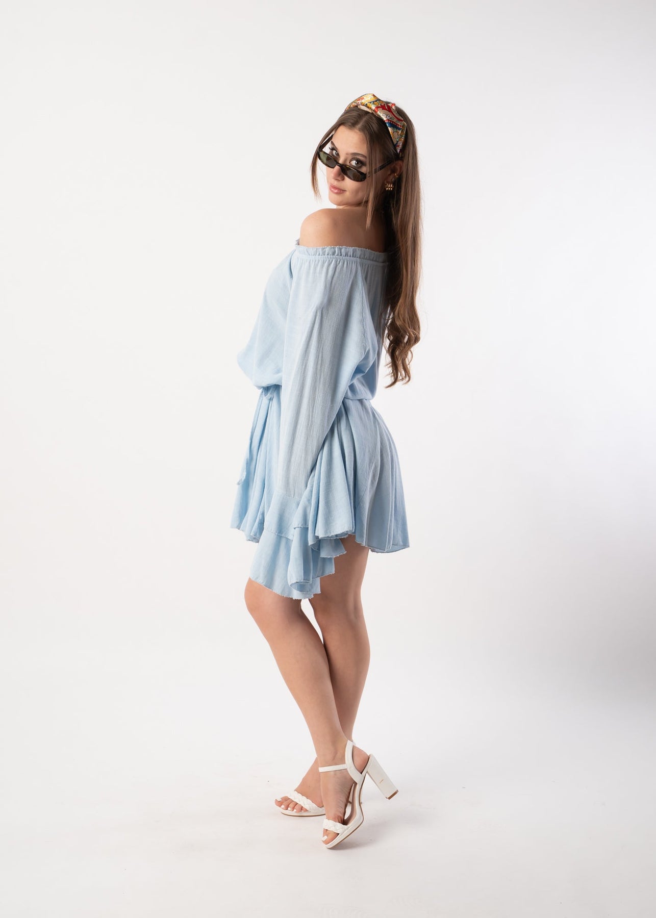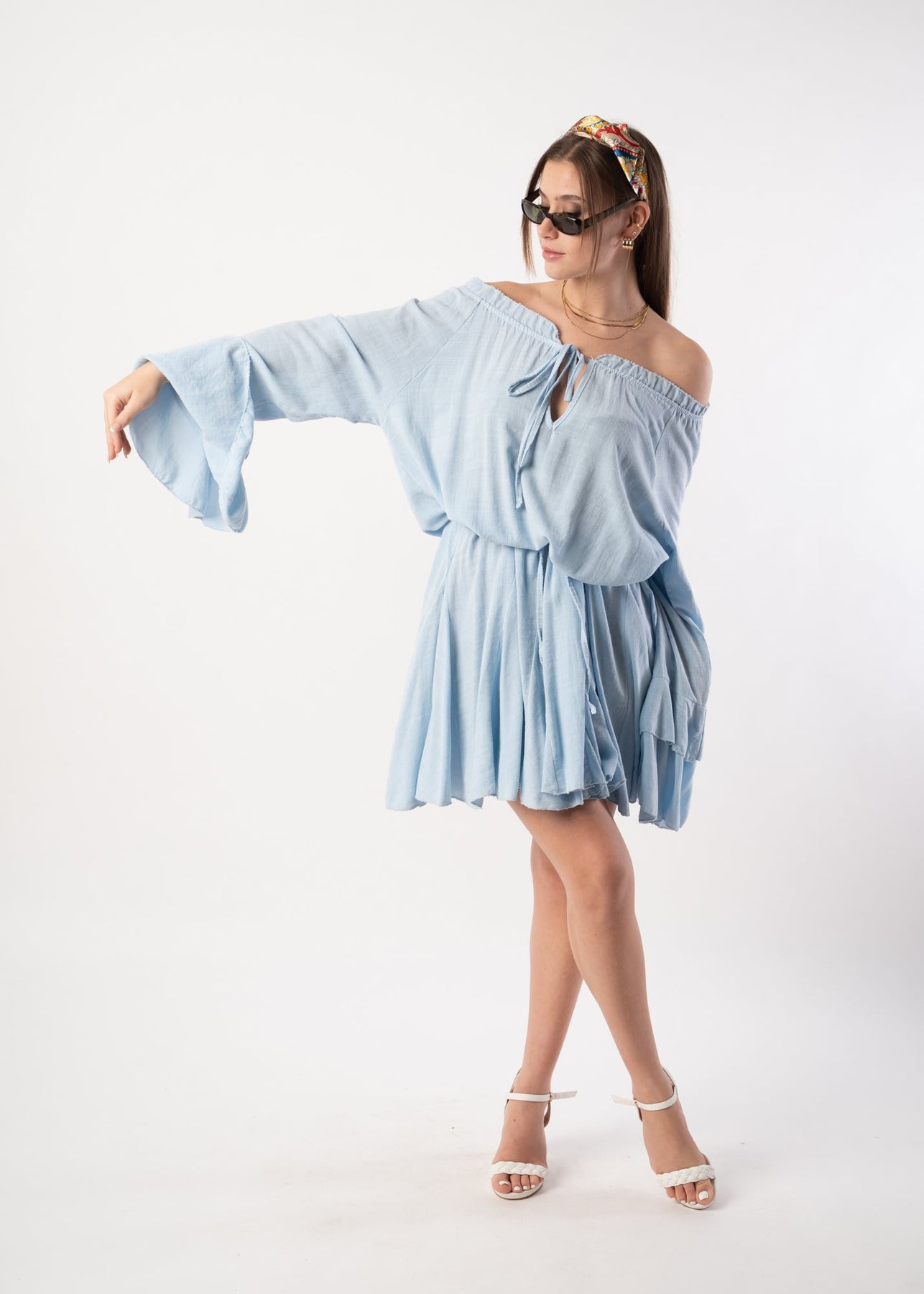 Oversized Linen Dress with Long Sleeves - Blue – Velariv