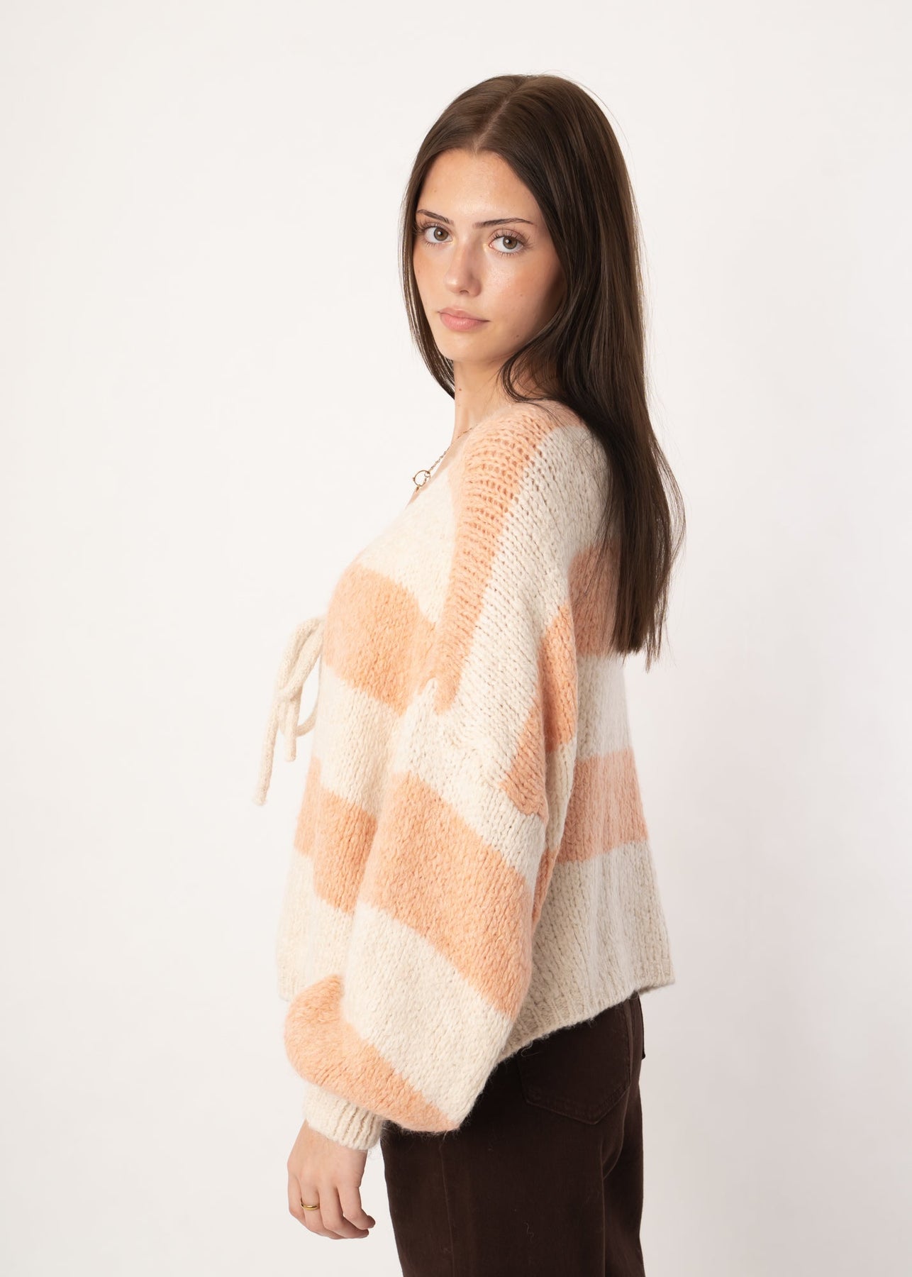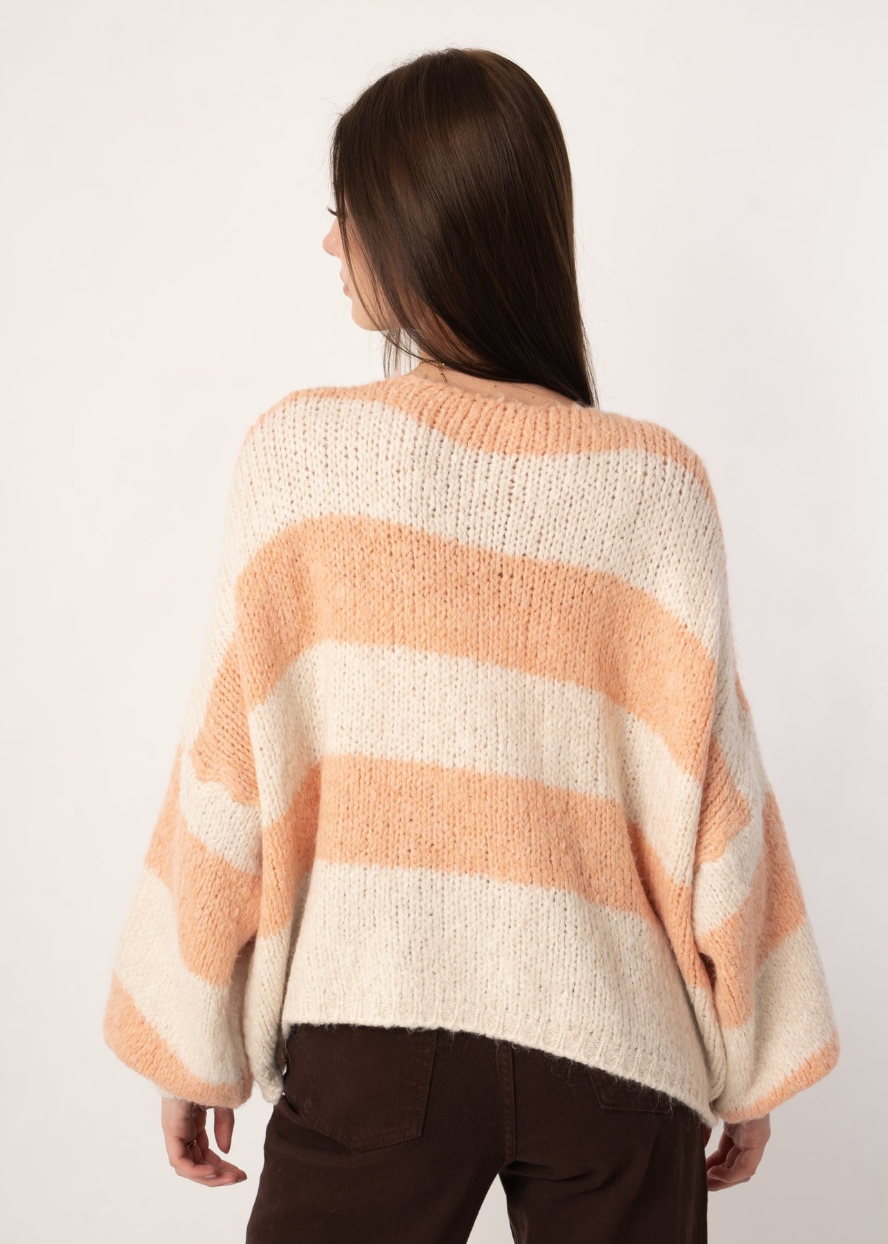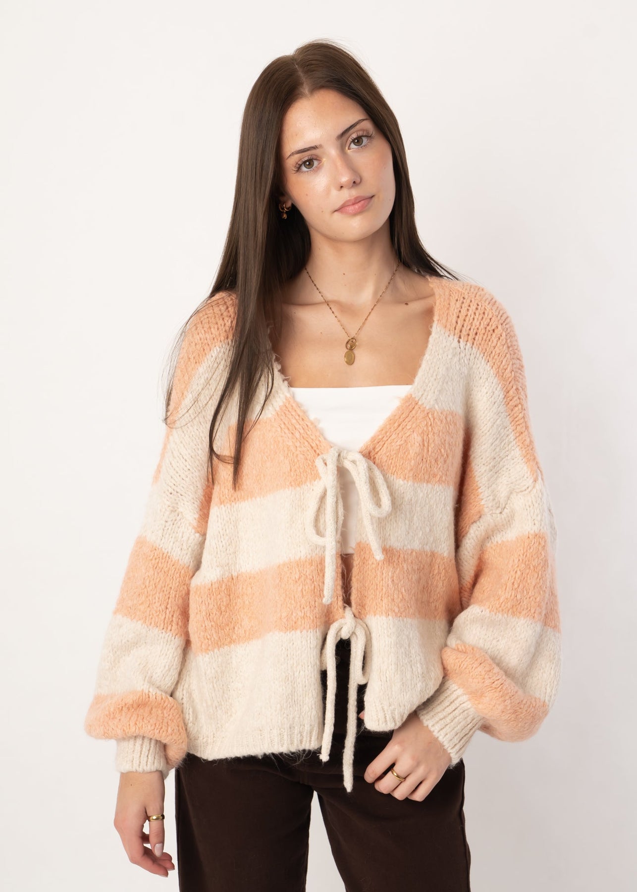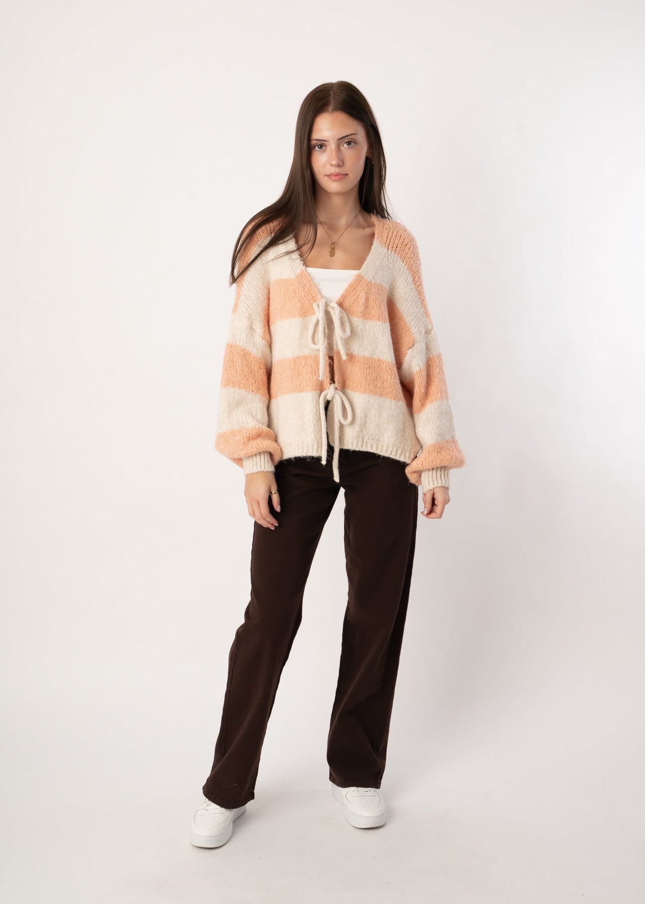 Wide Stripe Knit Cardigan - Apricot/Cream – Velariv