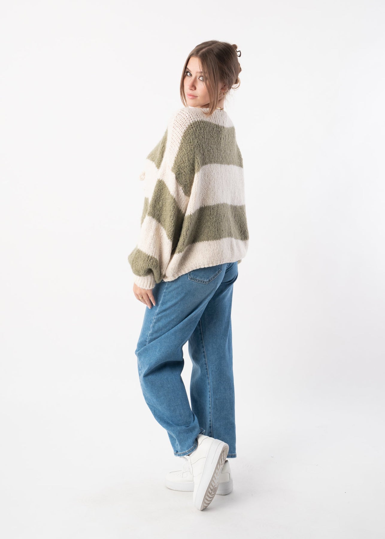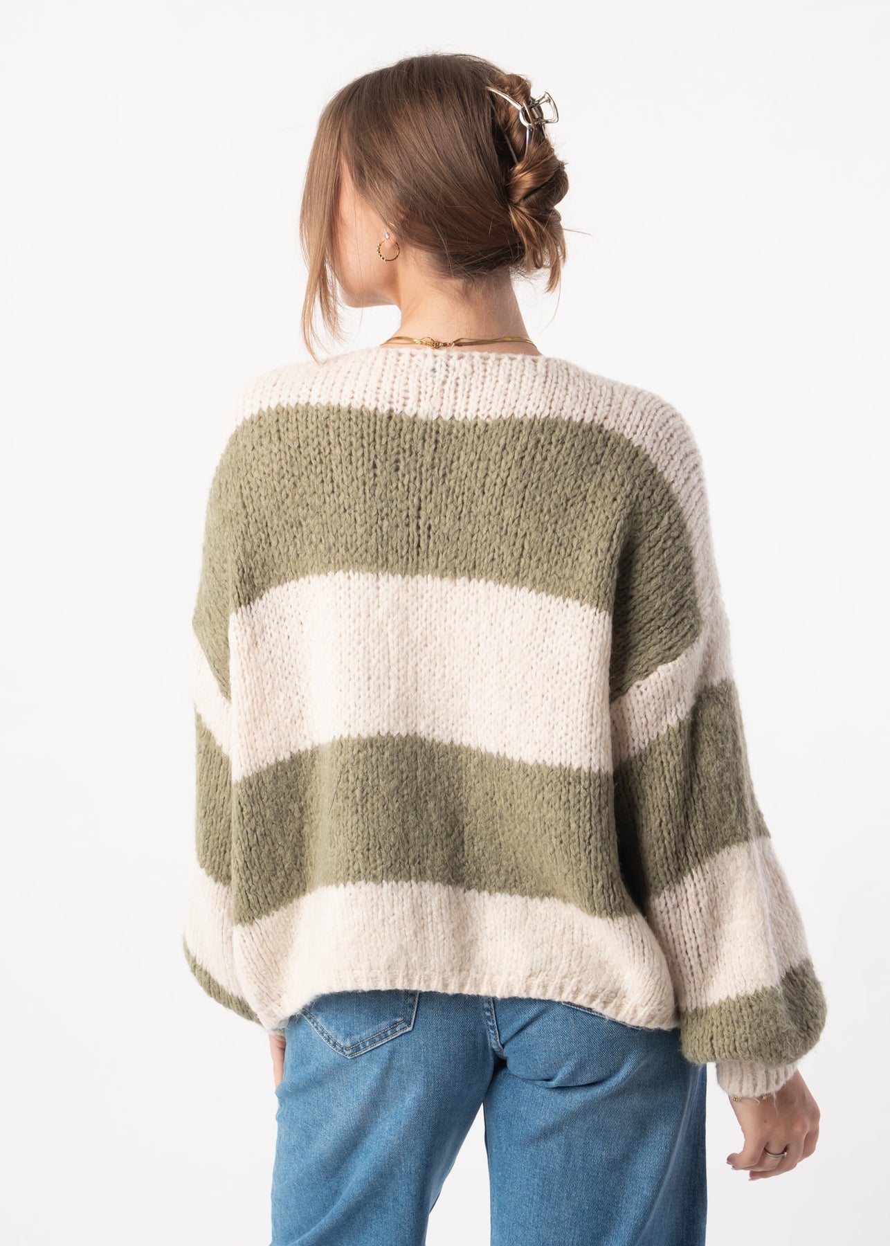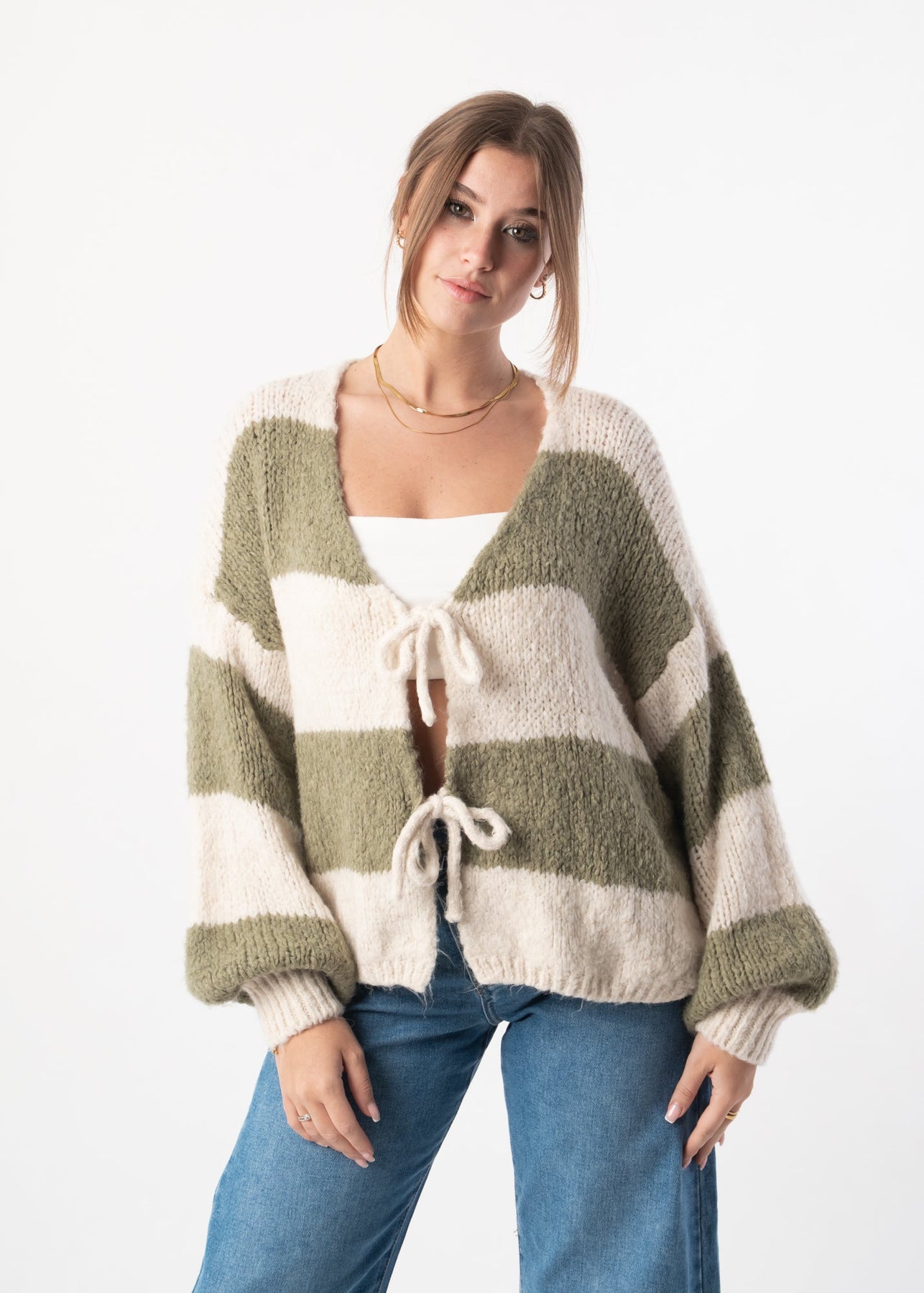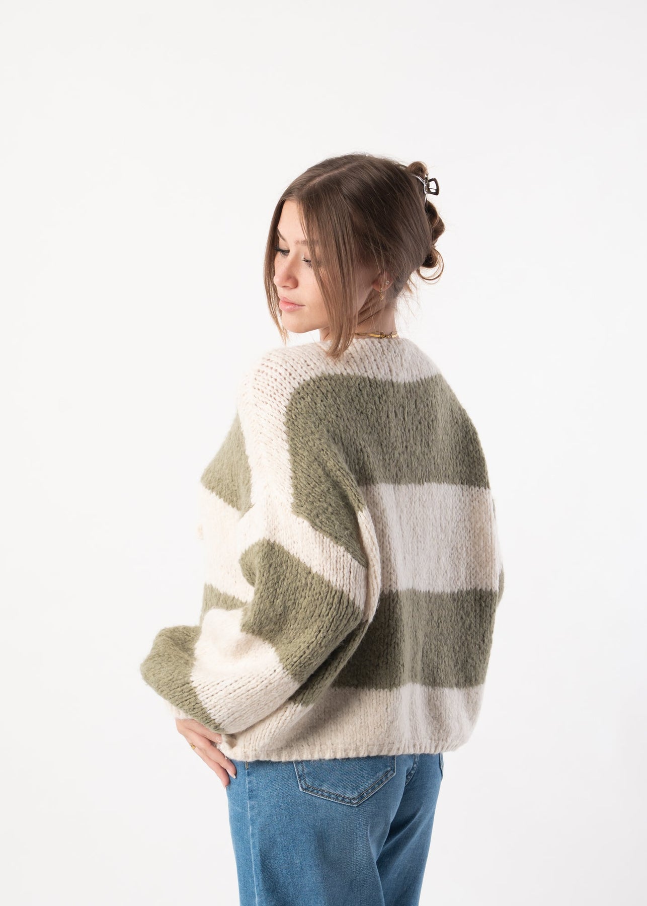 Wide Stripe Knit Cardigan - Cream/Matcha – Velariv