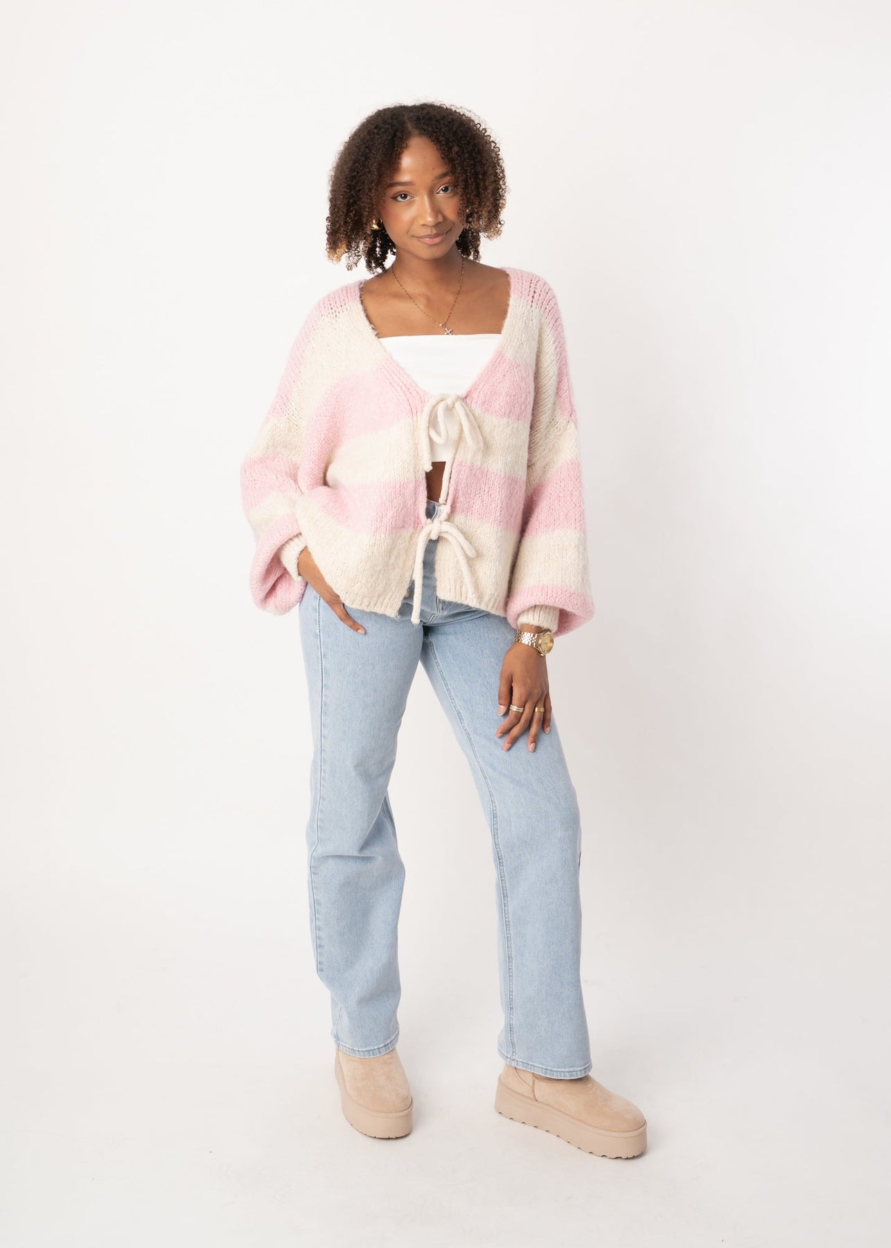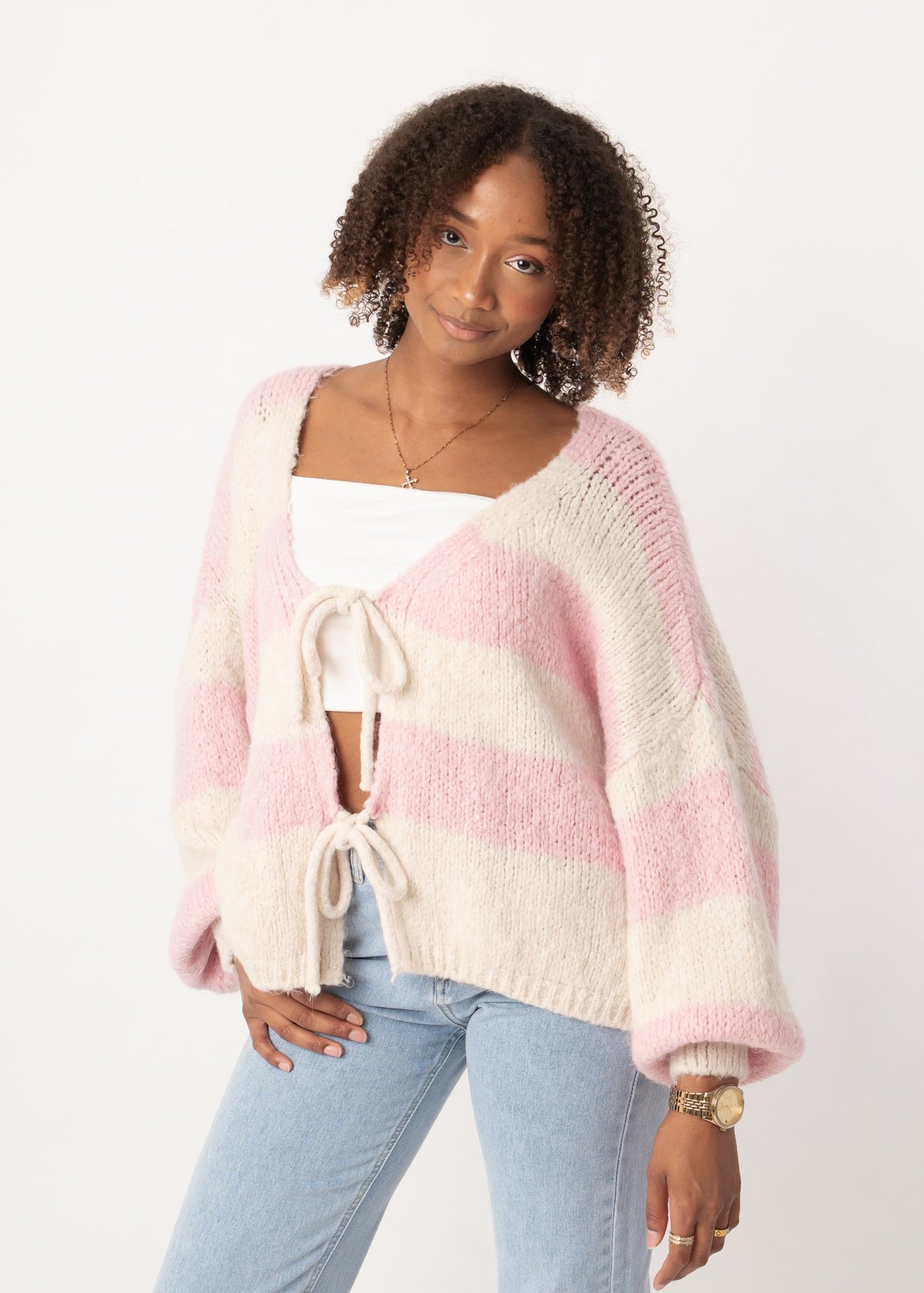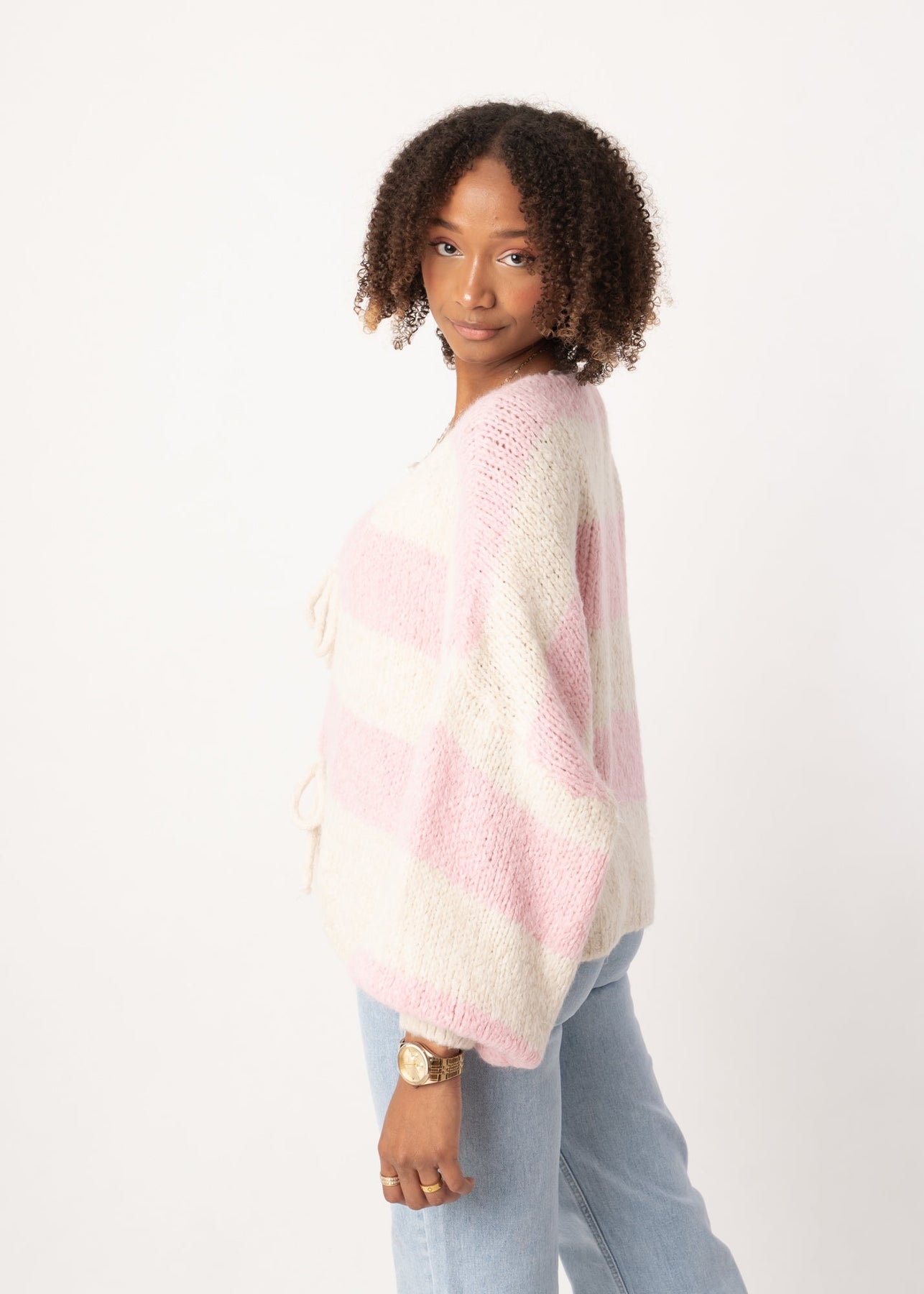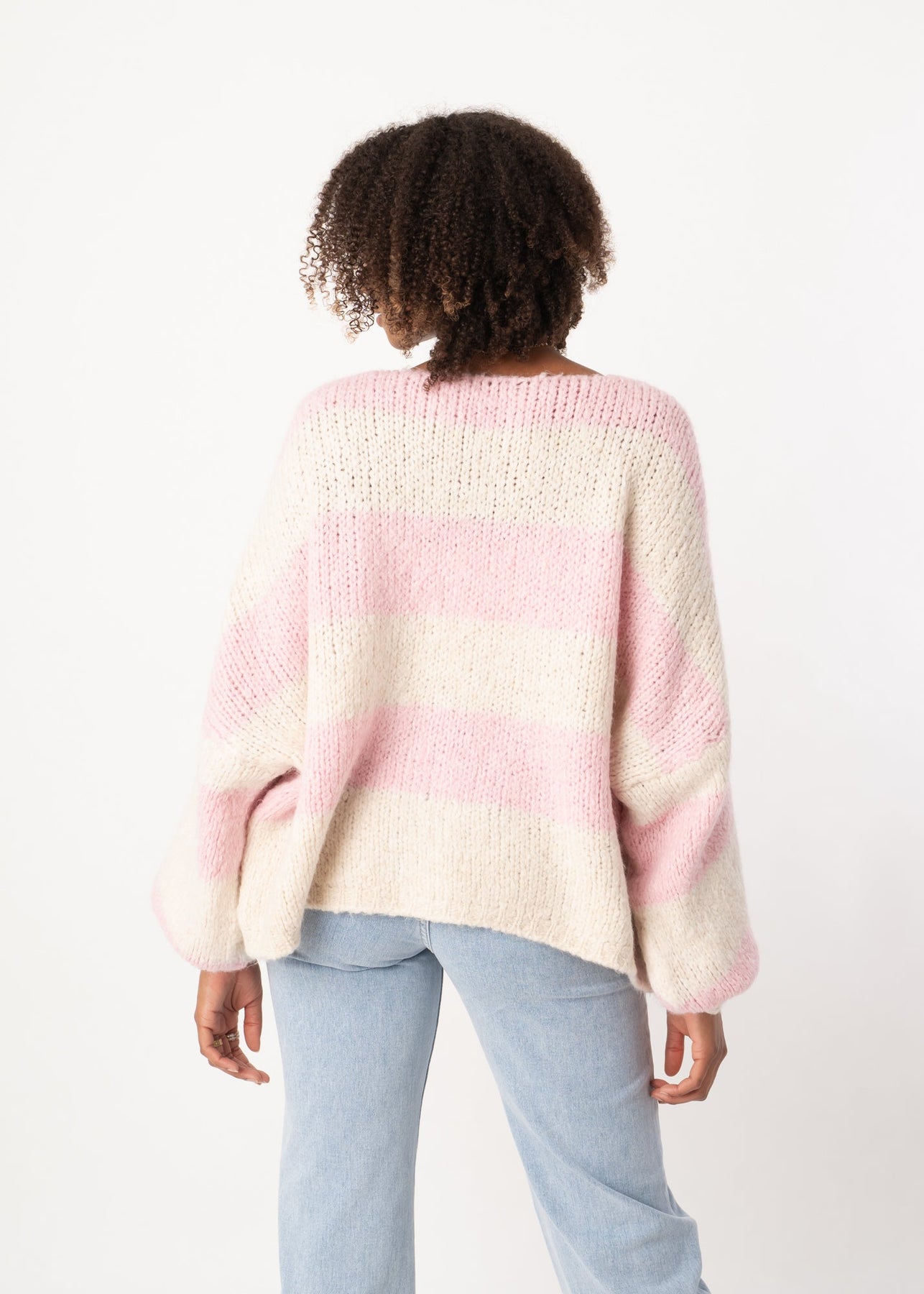 Wide Stripe Knit Cardigan - Pink/Cream – Velariv