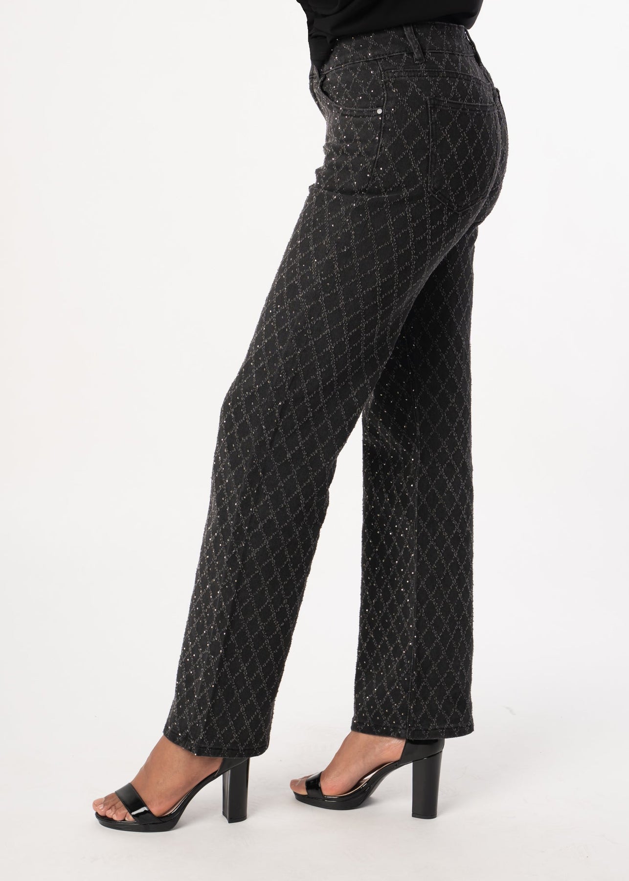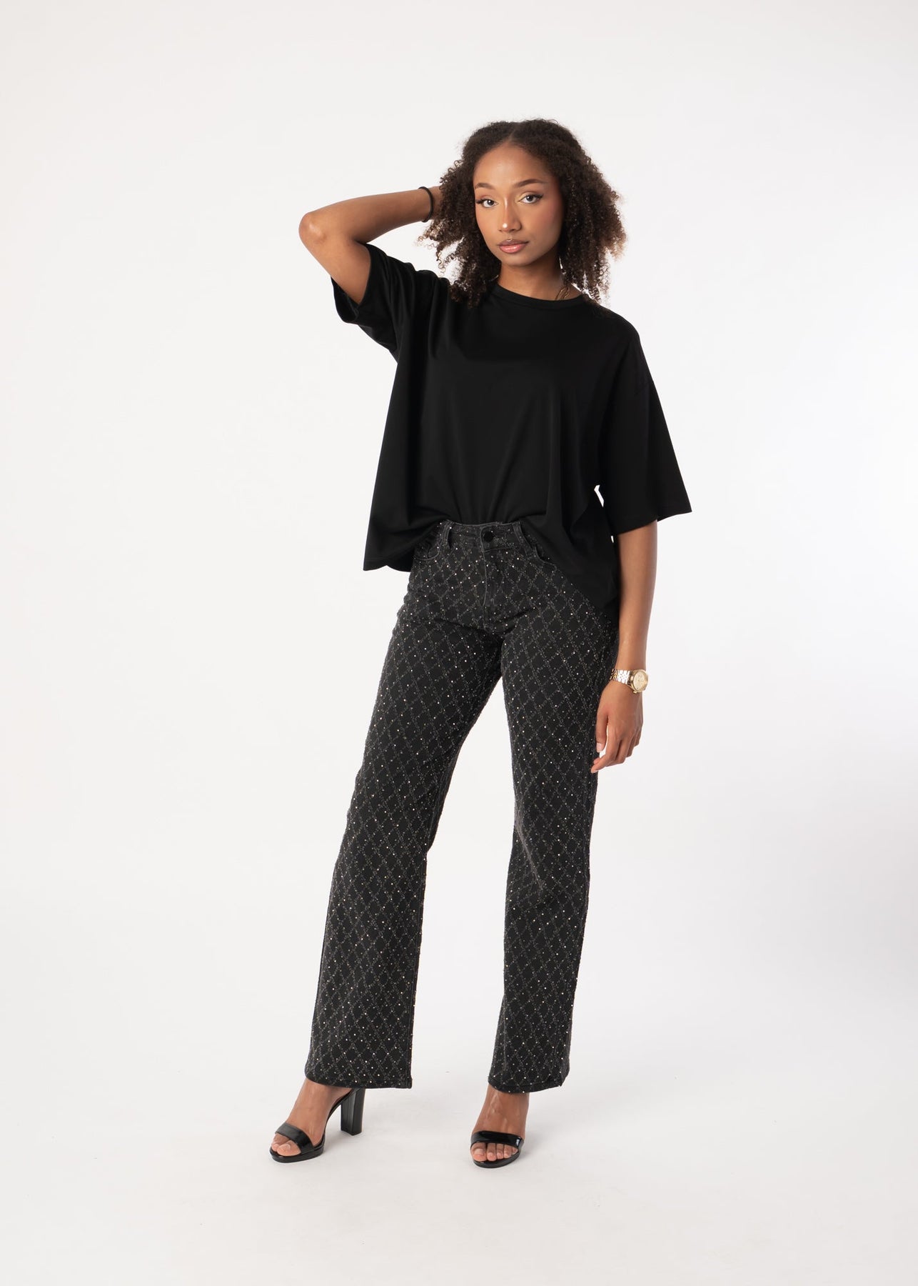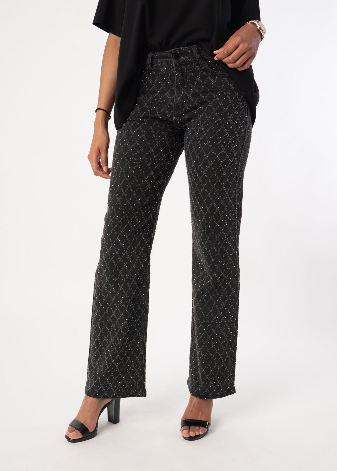 Karo Straight Leg Jeans with Rhinestones - Black – Velariv