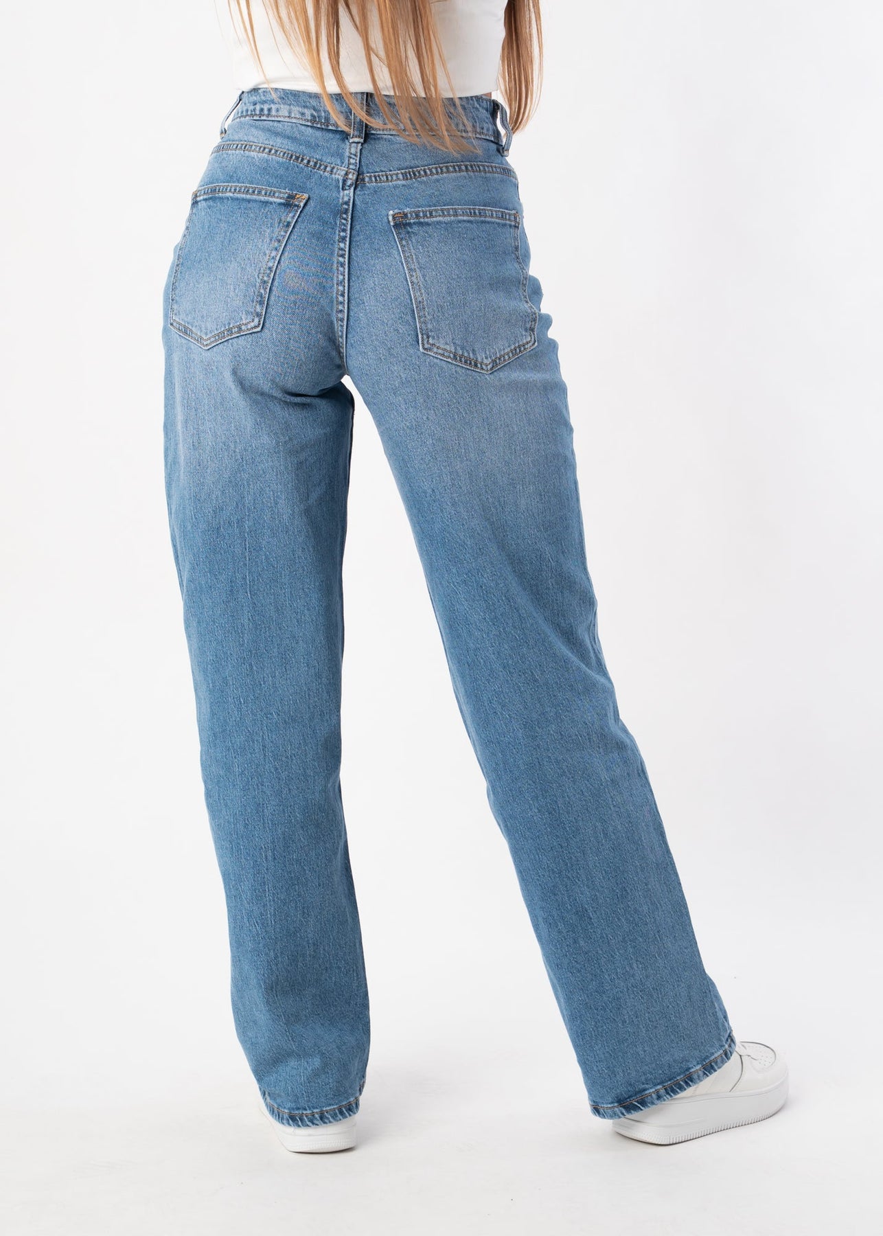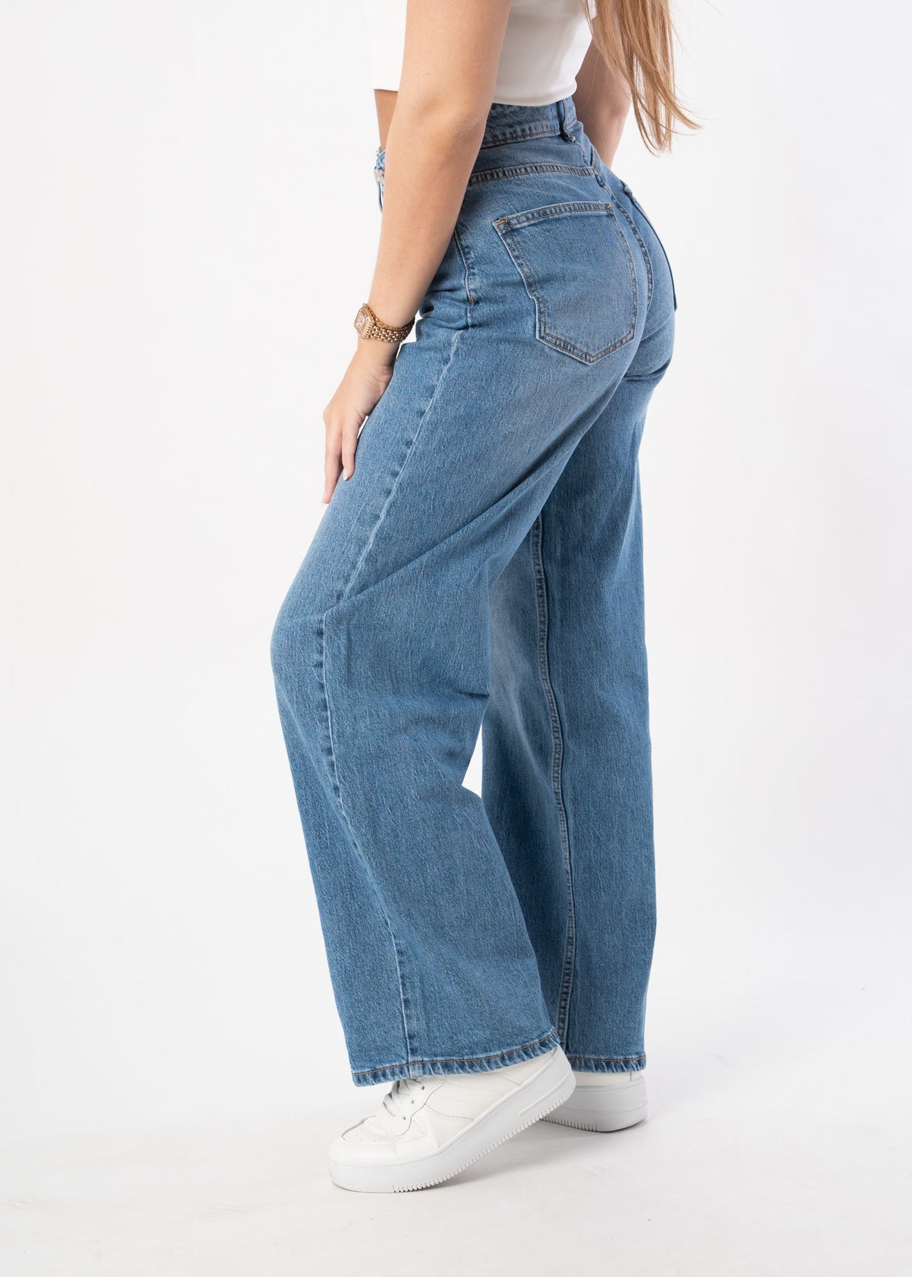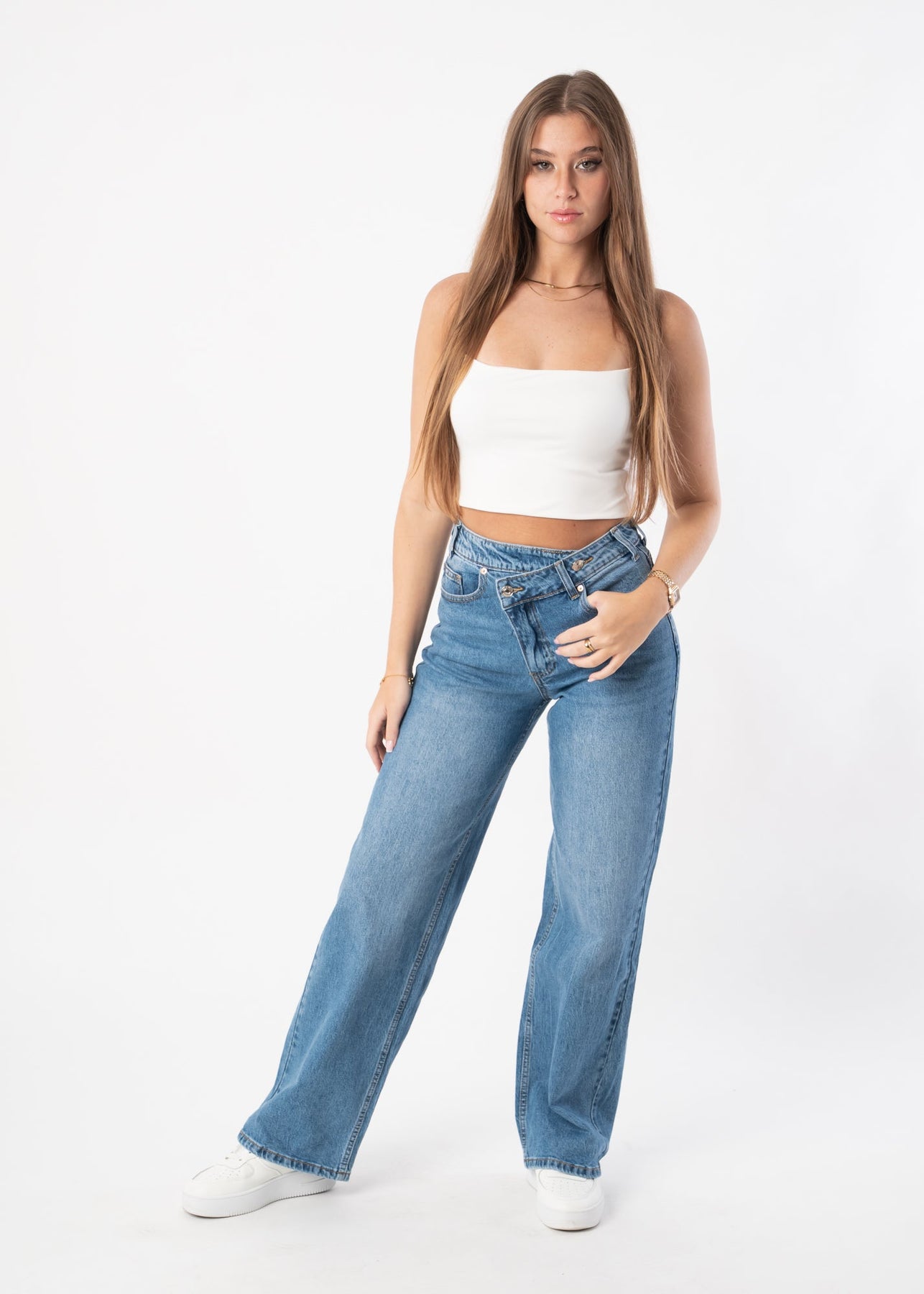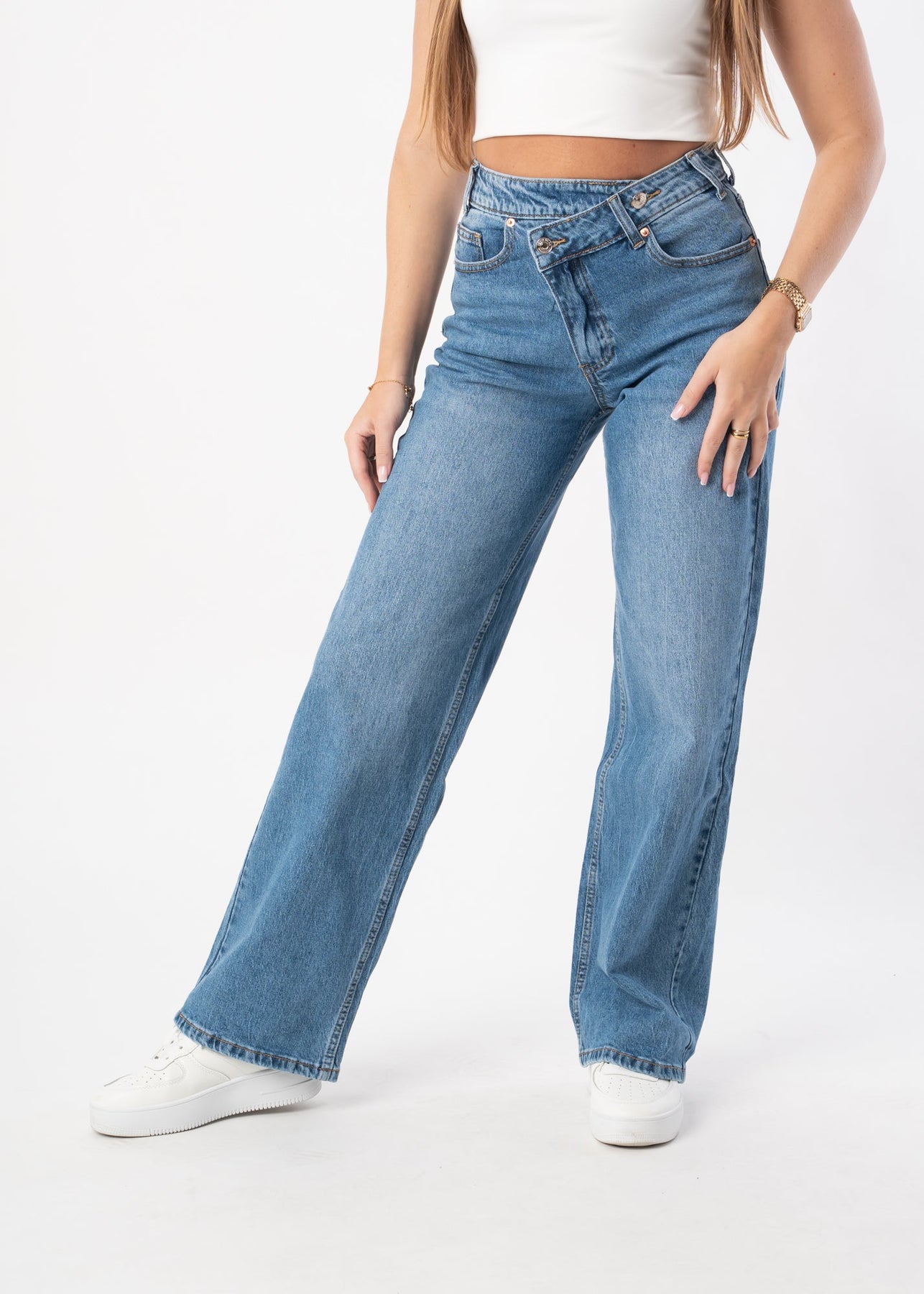 Wide Leg Asymmetric Jeans - Medium Blue – Velariv
