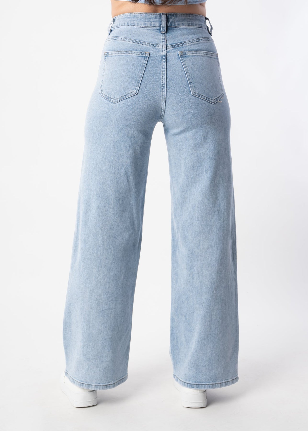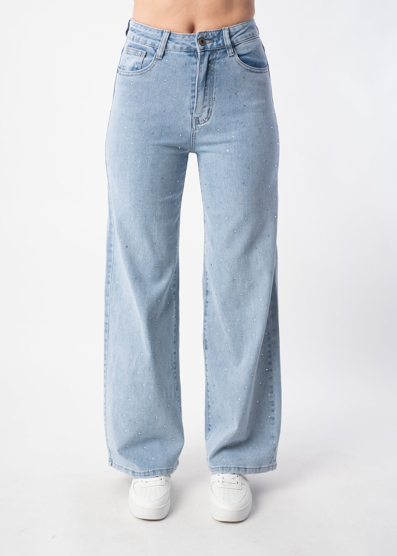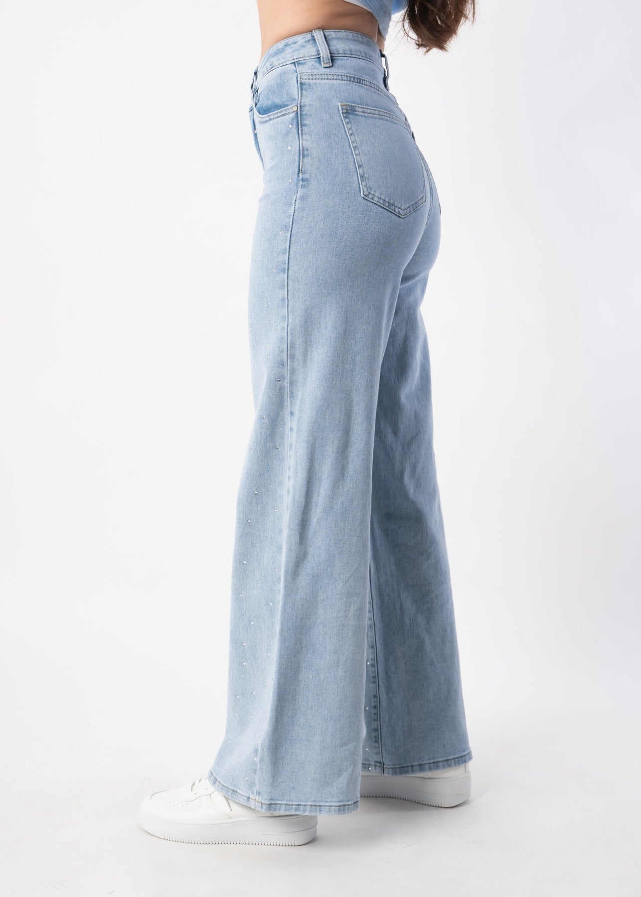 Wide Leg Jeans with Rhinestones - Light Blue – Velariv